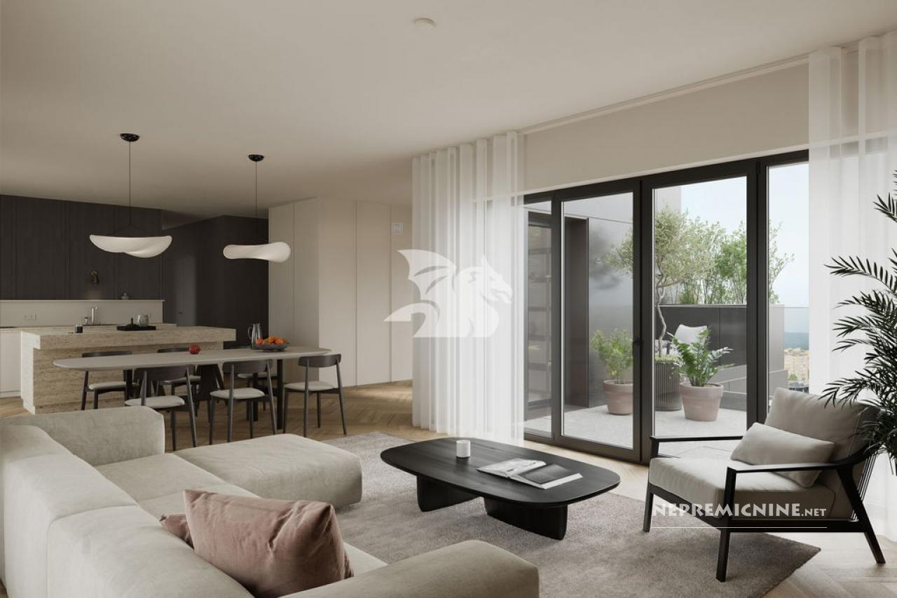 Ontdek dit uitzonderlijke 4-kamer penthouse appartement dat zich uitstrekt over de gehele 15e verdieping van de moderne Kvartet wijk in Šiška. Met een royale binnenruimte van 171,51 m², aangevuld met ruime terrassen en een balkon van in totaal 26,34 m², biedt dit appartement adembenemende uitzichten over Ljubljana. Het appartement, samen met een kelderberging, meet in totaal 201,05 m² bruto. Het penthouse verwelkomt u met een ruime hal die een prachtig uitzicht op de stad biedt en toegang geeft tot het eerste terras, perfect voor een rustige ochtendkoffie of avondontspanning. De centrale woonruimte omvat een lichte woonkamer met een moderne keuken en kookeiland, met toegang tot een tweede terras, ideaal voor buitenplezier en sociale bijeenkomsten. De wijk Kvartet in Šiška biedt een eersteklas stedelijk leven met nabijgelegen voorzieningen zoals een winkelcentrum, kleuterschool, school, apotheek en bibliotheek. Geniet van de perfecte balans tussen natuur en moderne stedelijke gemakken voor een hoogwaardige en ontspannen levensstijl.