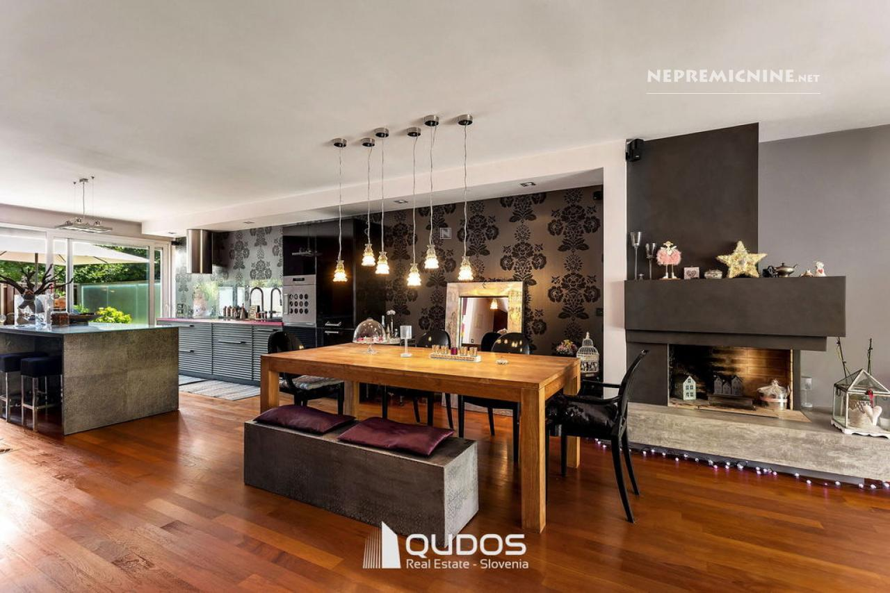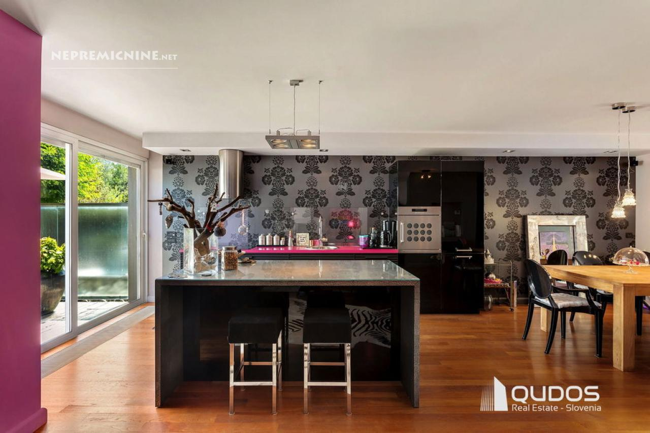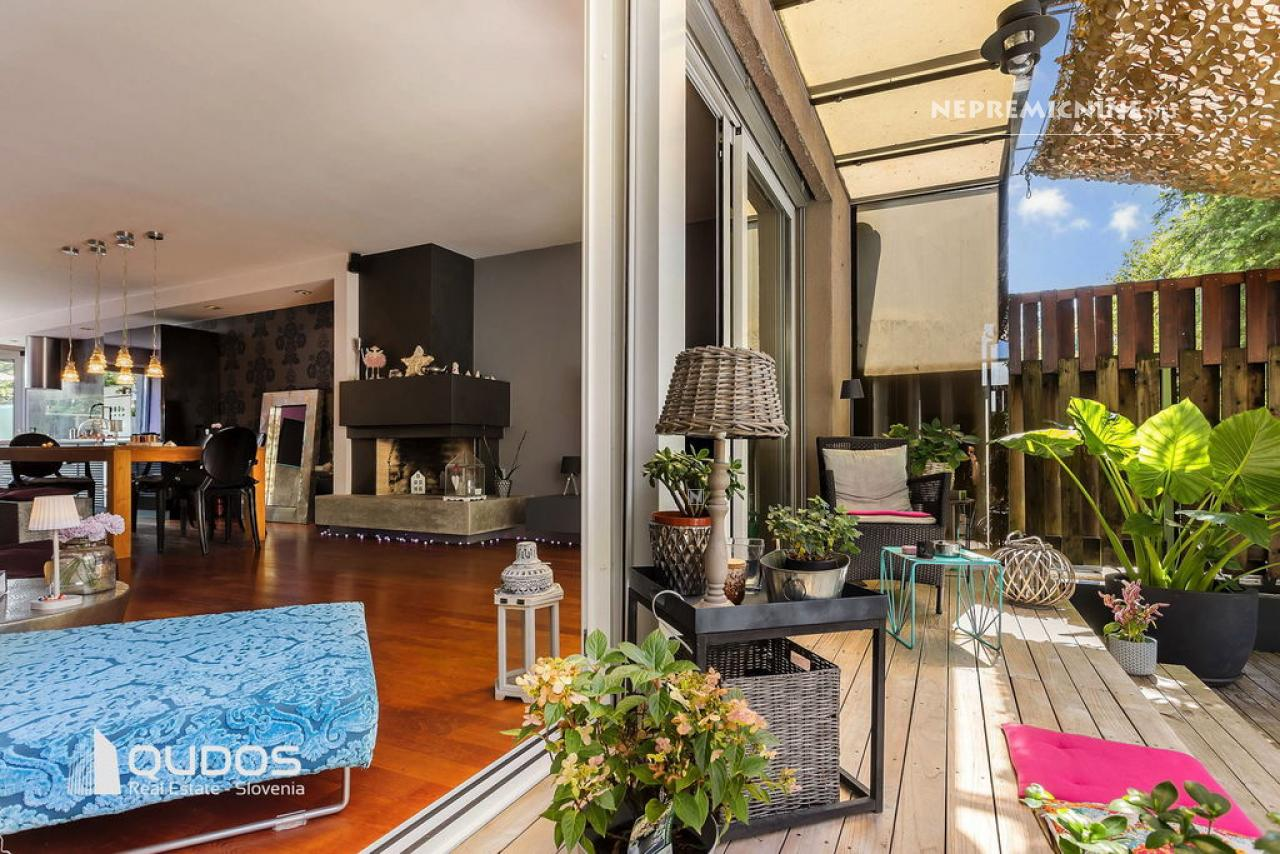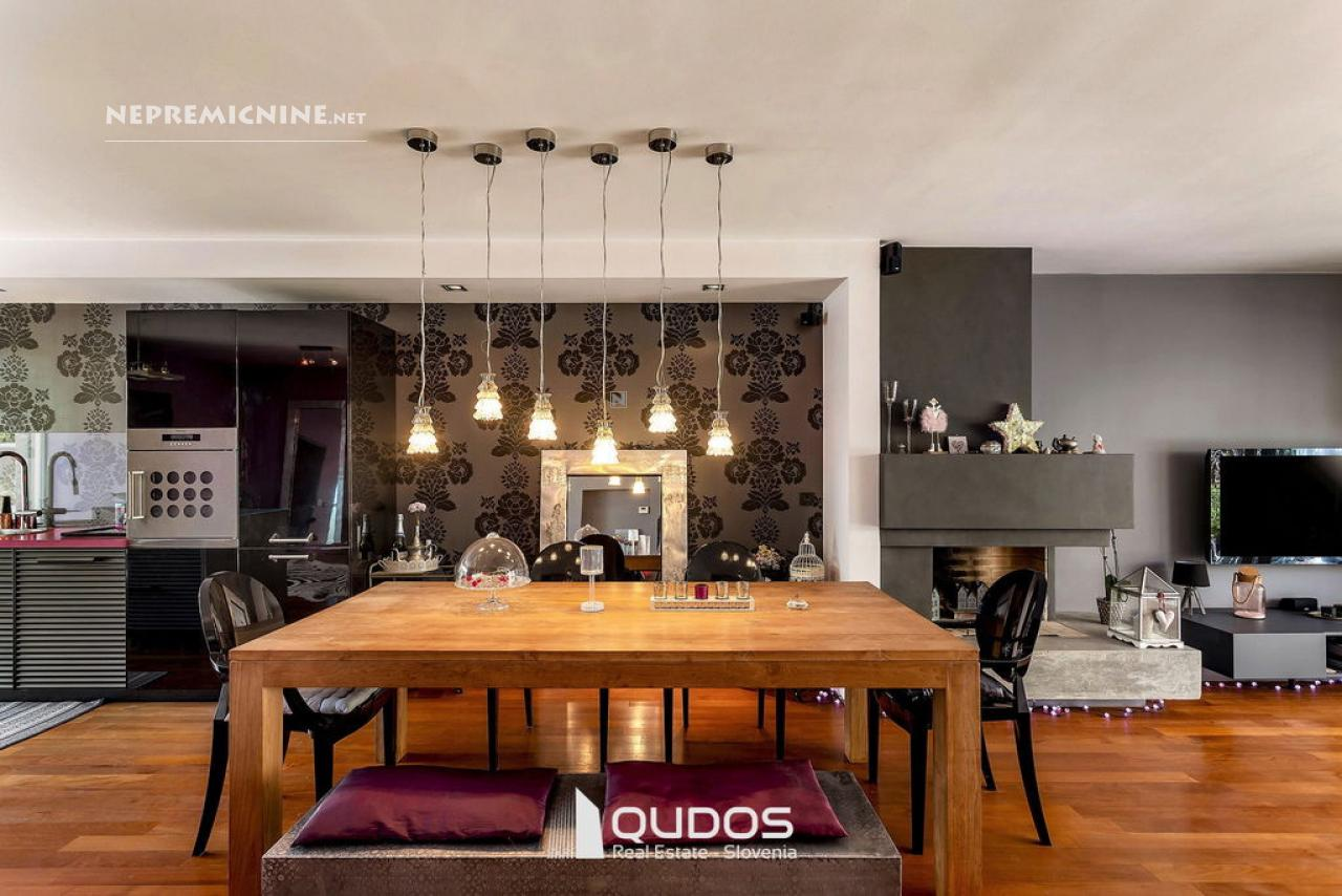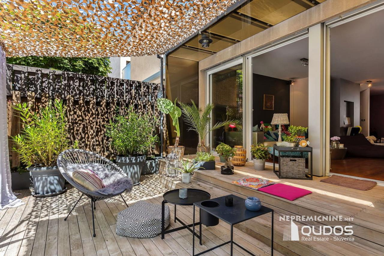 Dit prachtige rijtjeshuis, gelegen in de gewilde wijk Mostec nabij Koseški Bajer, biedt een unieke combinatie van modern design en natuurlijke schoonheid. Met een woonoppervlakte van 202,6 m² en een perceel van 165 m², is deze woning een oase van rust en luxe. De woning is gebouwd in 2006 en beschikt over twee ruime slaapkamers, drie badkamers en een indrukwekkende open leefruimte die naadloos overgaat in twee prachtige terrassen. De westelijke terras is een zen-oase met houten vloeren, weelderige planten en een klein zwembad, perfect voor ontspanning. De oostelijke terras biedt een intieme setting voor ochtendkoffie of avondwijn. De woning is volledig uitgerust met vloerverwarming, een centraal stofzuigsysteem en een Bose-geluidssysteem. De nabijheid van de natuur, zoals de Rožnik-heuvel en talrijke wandelpaden, maakt het een ideale locatie voor natuurliefhebbers. Bovendien ligt het op slechts 3 km van het centrum van Ljubljana en 2 km van de ringweg, waardoor het een uitstekende keuze is voor diegenen die zowel rust als stedelijke voorzieningen willen. In de buurt vindt u diverse winkels, restaurants en uitstekende vervoersverbindingen.