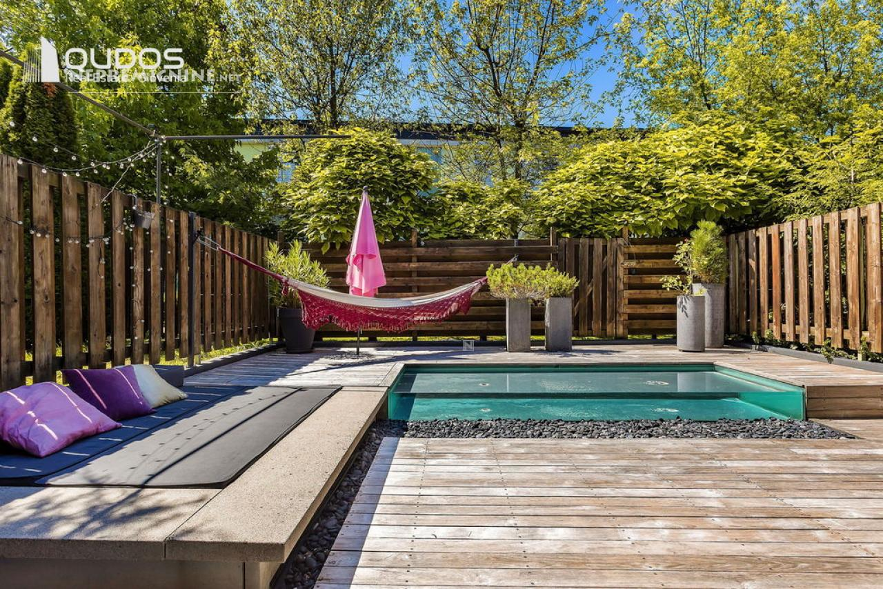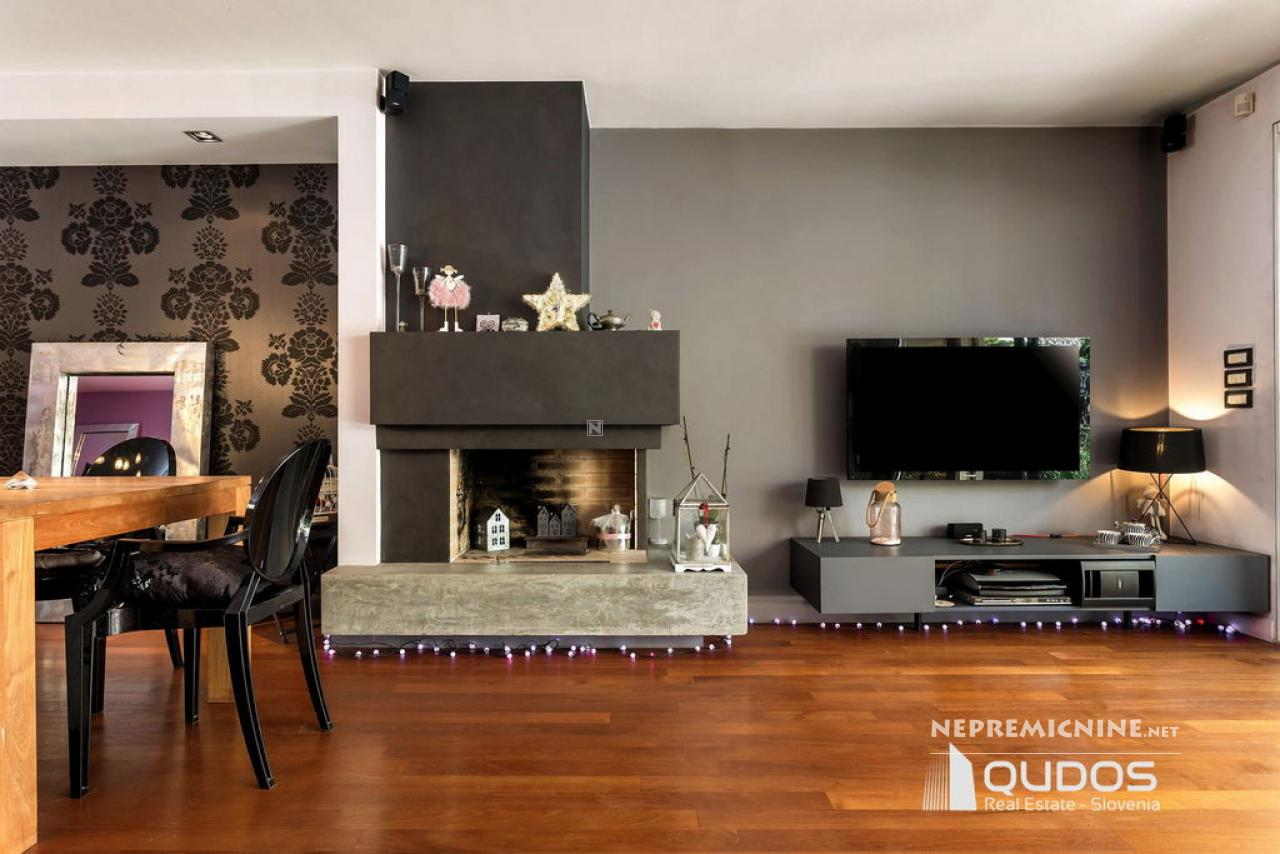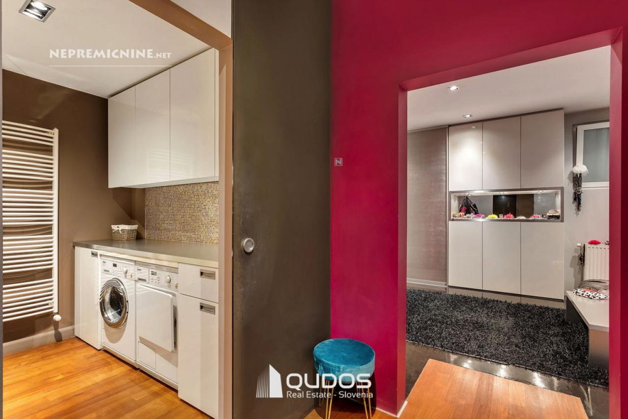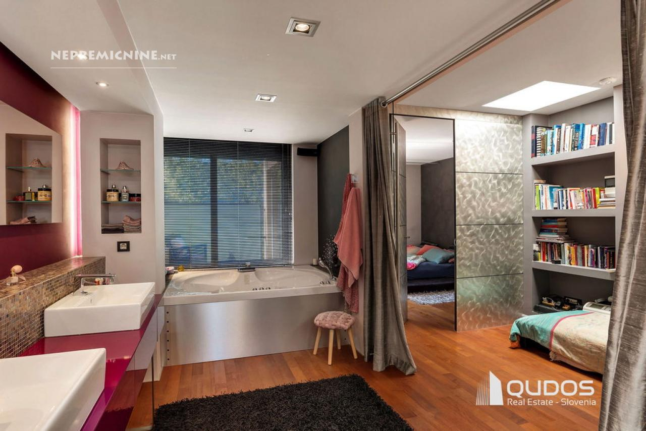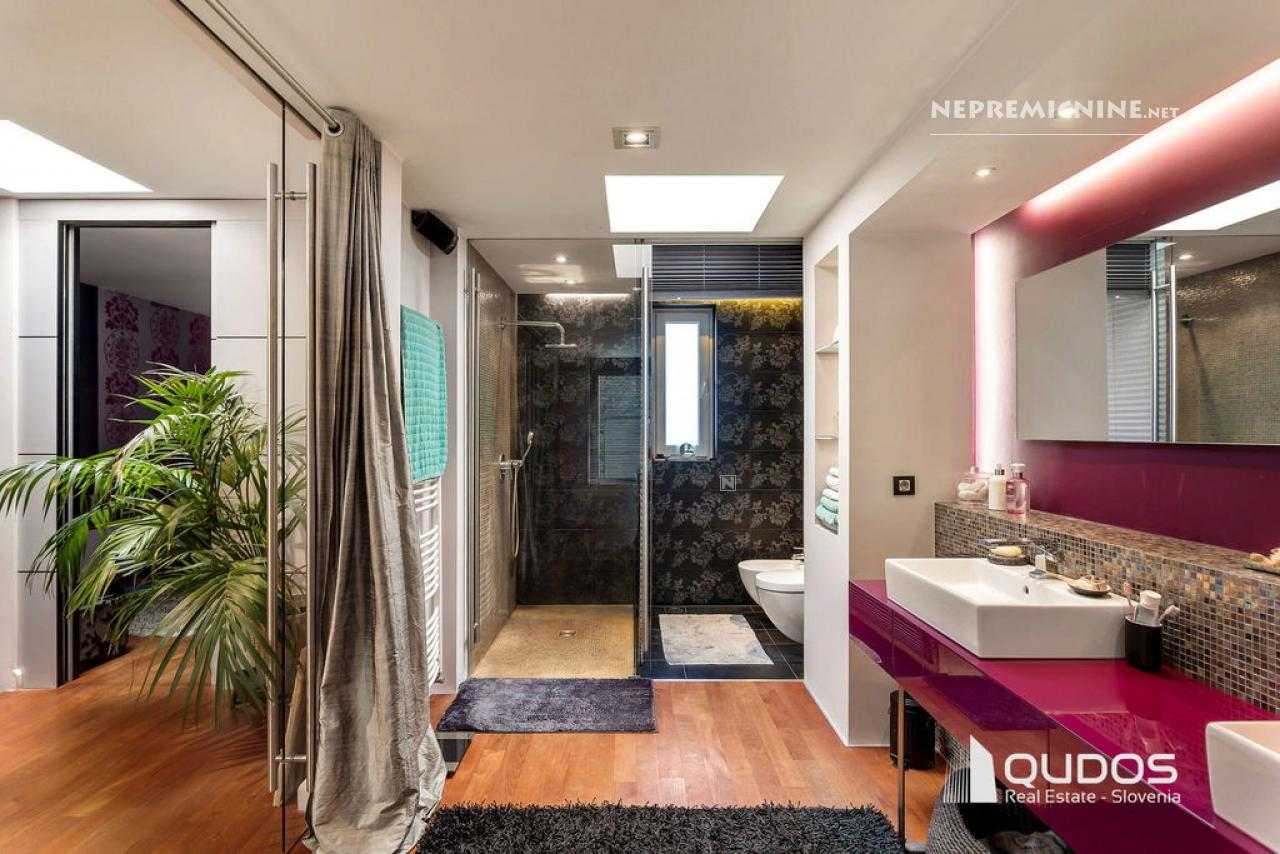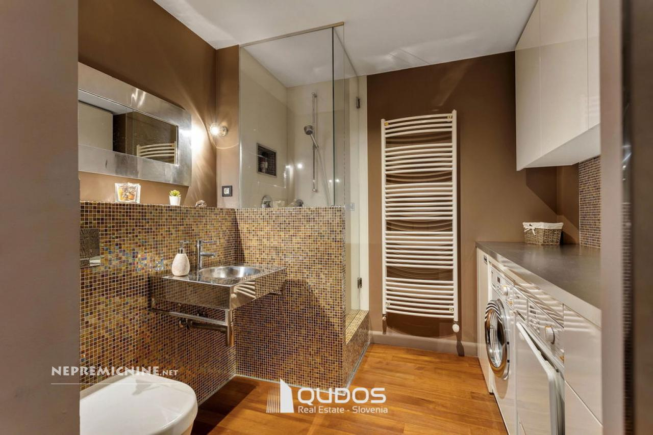 Dit prachtige rijtjeshuis, gelegen in de gewilde wijk Mostec nabij Koseški Bajer, biedt een unieke combinatie van modern design en natuurlijke schoonheid. Met een woonoppervlakte van 202,6 m² en een perceel van 165 m², is deze woning een oase van rust en luxe. De woning is gebouwd in 2006 en beschikt over twee ruime slaapkamers, drie badkamers en een indrukwekkende open leefruimte die naadloos overgaat in twee prachtige terrassen. De westelijke terras is een zen-oase met houten vloeren, weelderige planten en een klein zwembad, perfect voor ontspanning. De oostelijke terras biedt een intieme setting voor ochtendkoffie of avondwijn. De woning is volledig uitgerust met vloerverwarming, een centraal stofzuigsysteem en een Bose-geluidssysteem. De nabijheid van de natuur, zoals de Rožnik-heuvel en talrijke wandelpaden, maakt het een ideale locatie voor natuurliefhebbers. Bovendien ligt het op slechts 3 km van het centrum van Ljubljana en 2 km van de ringweg, waardoor het een uitstekende keuze is voor diegenen die zowel rust als stedelijke voorzieningen willen. In de buurt vindt u diverse winkels, restaurants en uitstekende vervoersverbindingen.