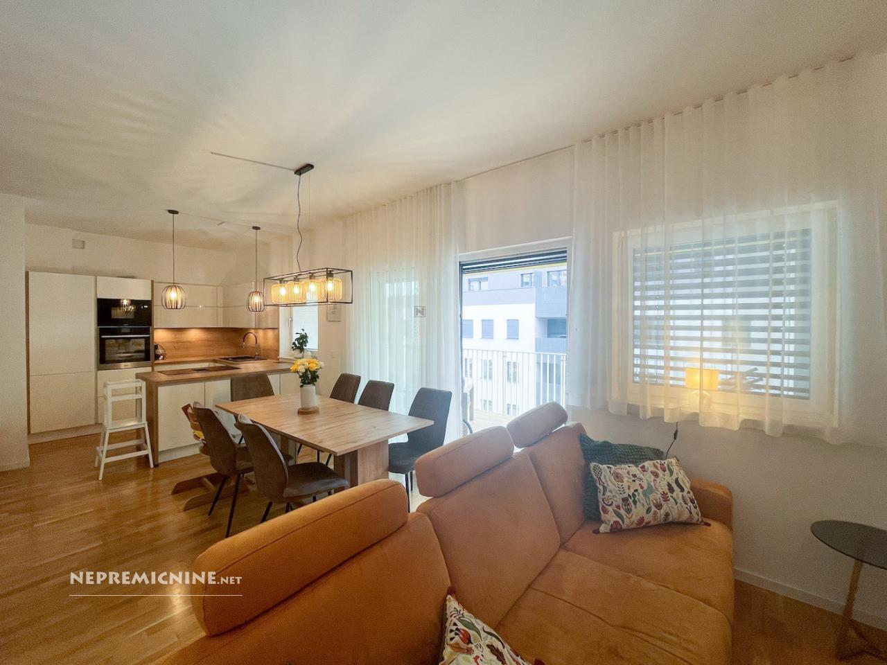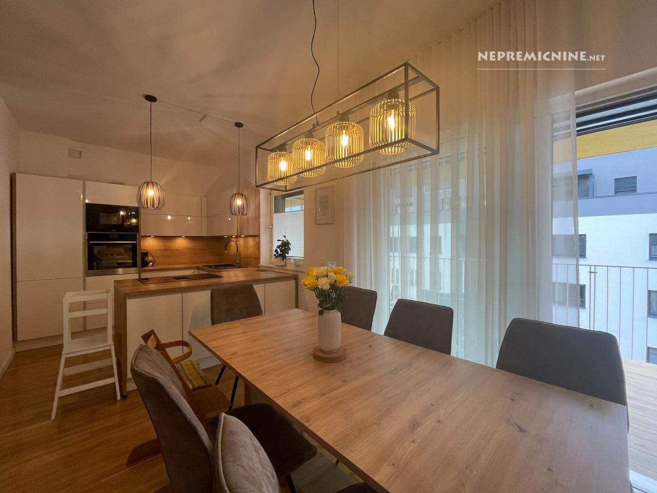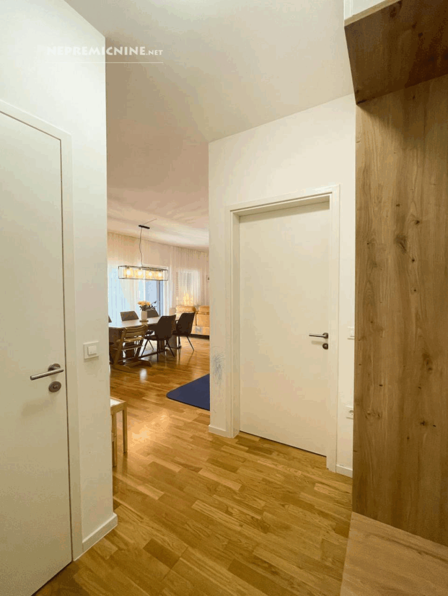 Dit moderne, energiezuinige vierkamerappartement bevindt zich in de gewilde wijk Nove Jarše, Ljubljana. Gelegen op de derde verdieping van een nieuwbouwcomplex uit 2023, biedt het appartement een ruime woonoppervlakte van 101,5 m², inclusief een grote overdekte terras van 16,9 m². Het appartement is deels op maat ingericht en beschikt over een open woonruimte met keuken en eetkamer, drie slaapkamers, een badkamer met douche en toilet, en een extra gastentoilet. De ligging is ideaal, op korte afstand van het stadscentrum, nabij het Šmartinski park en het winkelcentrum BTC. De omgeving biedt alle benodigde infrastructuur, waaronder winkels, restaurants en uitstekende vervoersmogelijkheden. Het appartement is voorzien van vloerverwarming, airconditioning, en een eigen parkeerplaats in de garage, met de mogelijkheid om een extra parkeerplaats aan te schaffen. Dit is een perfecte woning voor jonge gezinnen, stellen, senioren of als investering.