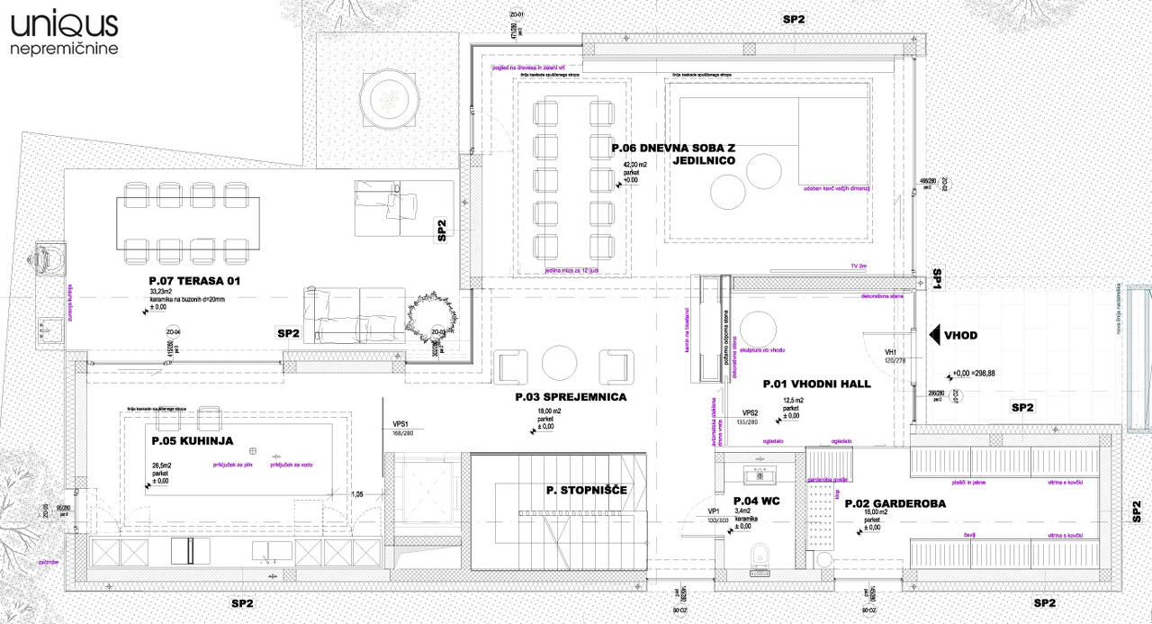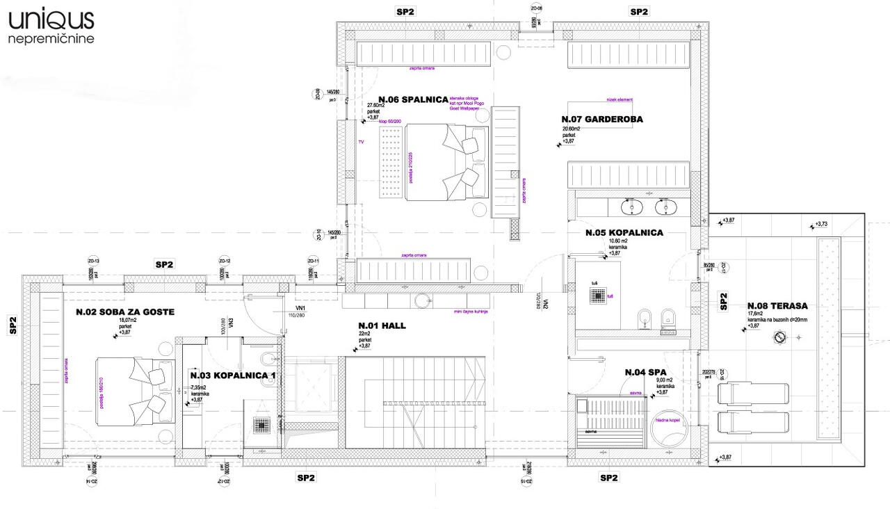 In het mooiste deel van Rožna Dolina, direct naast Rožnik, bieden wij een extravagante villa te koop aan. Deze luxe villa kenmerkt zich door een modern design, ruimtelijkheid en grote panoramische ramen die de kamers met aangenaam licht vullen. De uitzichten rusten het oog in het groen en nodigen uit voor een wandeling in het bos. Op het terras hoor je het gezang van vogels en zie je herten grazen op de weide achter het huis. Met de fiets ben je binnen 5 minuten in het centrum van de hoofdstad en met de auto binnen 5 minuten op de ringweg. Deze gewilde locatie in het hart van het stadscentrum biedt een bovengemiddelde woonervaring. De vrijstaande eengezinswoning heeft een indeling van kelder, begane grond, eerste verdieping en terras. Toegang tot alle verdiepingen is mogelijk via dubbele betonnen trappen en er is ook een lift voorzien. De woning heeft een bruto oppervlakte van 570 m², waarvan 386 m² netto bruikbare oppervlakte. Het perceel heeft een totale grootte van 824 m², met voldoende ruimte voor een tuin en een groot erf voor het parkeren van auto’s. De woning wordt verkocht in de verlengde derde bouwfase, met een afgewerkte contactgevel, massieve larikshouten voordeuren en driedubbel geïsoleerde aluminium/houten ramen met aluminium jaloezieën. Het dak is geïsoleerd met steenwol en bedekt met Prefa-platen. De gemeentelijke infrastructuur is aanwezig op het perceel. Het kadaster is in orde en er is een definitieve bouwvergunning verkregen voor de bouw van het huis.