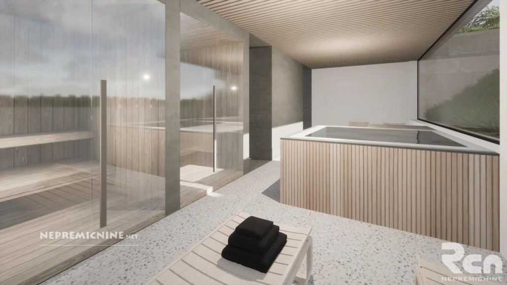 Deze prachtige nieuwbouwvilla in Kampel, Koper, biedt een unieke kans voor wie op zoek is naar een modern en comfortabel huis. Gelegen op een van de meest gewilde locaties boven Koper, biedt deze villa een serene omgeving met een mediterraan tintje. De villa, die in 2026 wordt opgeleverd, is ontworpen voor een zorgeloos leven en wordt ‘turnkey’ opgeleverd, wat betekent dat u direct kunt intrekken zonder extra werkzaamheden. De woning heeft een totale oppervlakte van 225,9 m², verdeeld over drie verdiepingen, en staat op een perceel van 653 m². De villa beschikt over vier slaapkamers en vijf badkamers, ideaal voor een groot gezin of iemand die veel ruimte nodig heeft. De buitenkant van de villa combineert moderne architectonische lijnen met een mediterraan gevoel, met een witte gevel, houten lamellen en stenen elementen. De villa is voorzien van een wellnessruimte met sauna’s, een jacuzzi en een privézwembad. De locatie biedt rust en zon, terwijl het centrum van Koper, winkels en scholen slechts enkele minuten verwijderd zijn. Koper is een charmante stad aan de Adriatische kust, bekend om zijn historische bezienswaardigheden en prachtige stranden. De regio Južna Primorska biedt tal van toeristische attracties, zoals de pittoreske stad Piran en de grotten van Škocjan. Deze villa is een uitstekende investering voor wie op zoek is naar een combinatie van esthetiek, kwaliteit en comfort.