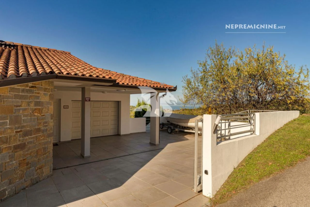 Op een uitzonderlijke locatie in het rustige dorpje Malija bij Izola, bieden wij een moderne en ruime villa te koop aan, gebouwd in 2003. Deze prachtige villa ligt op een zonnig en uitgestrekt perceel van 1.363 m², met een adembenemend panoramisch uitzicht op de Sloveense, Kroatische en Italiaanse kust, en bij helder weer zelfs op Triglav en Nanos. De villa kenmerkt zich door hoogwaardige bouw, doordachte plattegrond en luxe interieur. De totale bruto oppervlakte bedraagt 325,9 m², waarvan 183,1 m² woonoppervlakte, met terrassen van in totaal 88,9 m², een opslagruimte van 14,1 m², een technische ruimte van 19,8 m² en een garage van 20 m². De begane grond omvat een hal, keuken met toegang tot een ruime opslag, eetkamer met glazen plafond voor veel natuurlijk licht, woonkamer met open haard en toegang tot een panoramisch terras, hoofdslaapkamer met eigen badkamer, kantoor, gastentoilet en garage. Het panoramische terras strekt zich uit over de gehele lengte van het huis en biedt ruimte voor een buiten eetgedeelte en loungehoek met prachtige uitzichten op Istrië, Grado en Venetië. De onderste verdieping heeft een open woonruimte met keuken en eetkamer, grote slaapkamer met eigen badkamer, gang met garderobe, tweede slaapkamer, extra badkamer, fitnessruimte (momenteel omgebouwd tot slaapkamer) met mogelijkheid voor sauna, technische ruimte en een kleine werkplaats, evenals een overdekt terras met uitzicht over de gehele lengte van het huis. De buitenkant en omgeving van de villa zijn prachtig aangelegd, met een houten terras in de schaduw, ideaal voor zomerdagen, en een groot terras met een zwembad van 4 x 8 m voor ontspanning in de zon. De villa wordt verwarmd met een moderne lucht-water warmtepomp, met vloerverwarming in de badkamers, keuken en eetkamer op de bovenverdieping. De woonkamer, kantoor en slaapkamer op de begane grond en twee slaapkamers op de benedenverdieping zijn voorzien van airconditioning. Voor de villa is een geplaveid terrein met parkeerplaatsen voor maximaal 4 voertuigen. De villa ligt in het rustige dorpje Malija, omgeven door natuur en prachtige uitzichten. Alle benodigde infrastructuur (scholen, winkels, gezondheidscentrum, postkantoor, etc.) is beschikbaar in het slechts 3 km verderop gelegen Lucija bij Portorož. Deze villa is de perfecte keuze voor iedereen die op zoek is naar rust, luxe, natuur en prachtige uitzichten – alles op een uitstekende locatie in het Sloveense Istrië. Bezoek is zeker de moeite waard!