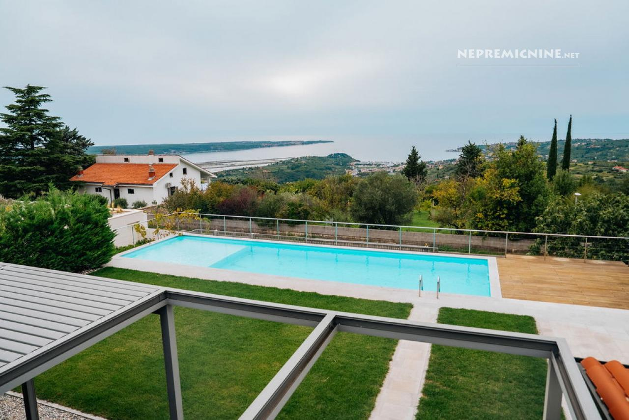 Deze prachtige villa in Nožed biedt een ongeëvenaard uitzicht op de kust en de zee, met een zwembad en ruimte voor zeven auto’s. Gelegen in een klein dorpje boven Portorož, biedt deze luxe villa een panoramisch uitzicht op drie landen: Portorož, de Savudrija-baai en de Italiaanse Dolomieten. De villa combineert moderne architectuur met comfort en een mediterrane sfeer. De woning is verdeeld over drie verdiepingen en beschikt over een ruime garage, een lift, een lichte woonkamer, een moderne keuken, een grote sociale ruimte, vijf slaapkamers, een sauna, een jacuzzi en een zorgvuldig onderhouden tuin met een automatisch irrigatiesysteem. De buitenkeuken, gemaakt van handgehouwen dolomiet, is perfect voor culinaire ervaringen in de open lucht. De locatie biedt gemakkelijke toegang tot Portorož (6 km), Triëst (36 km), Ljubljana (119 km), Venetië (199 km), Zagreb (254 km), Milaan (460 km), Wenen (496 km) en München (521 km).