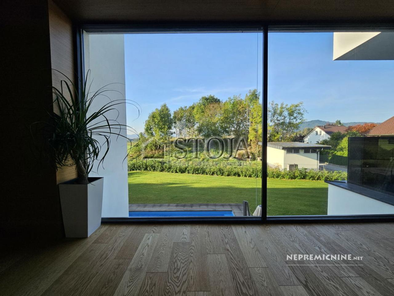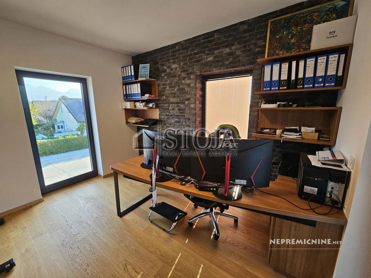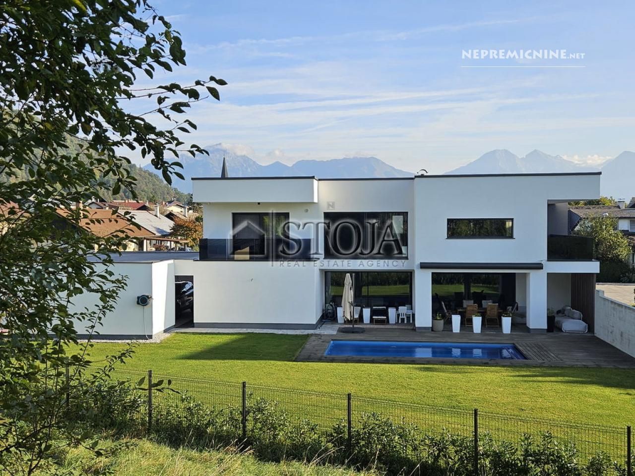 Ontdek deze prestigieuze villa gelegen aan de rand van Kranj, in een rustige en veilige buurt omgeven door groene velden en nabij de populaire toeristische bestemmingen Šmarjetna Gora en Sveti Jošt.