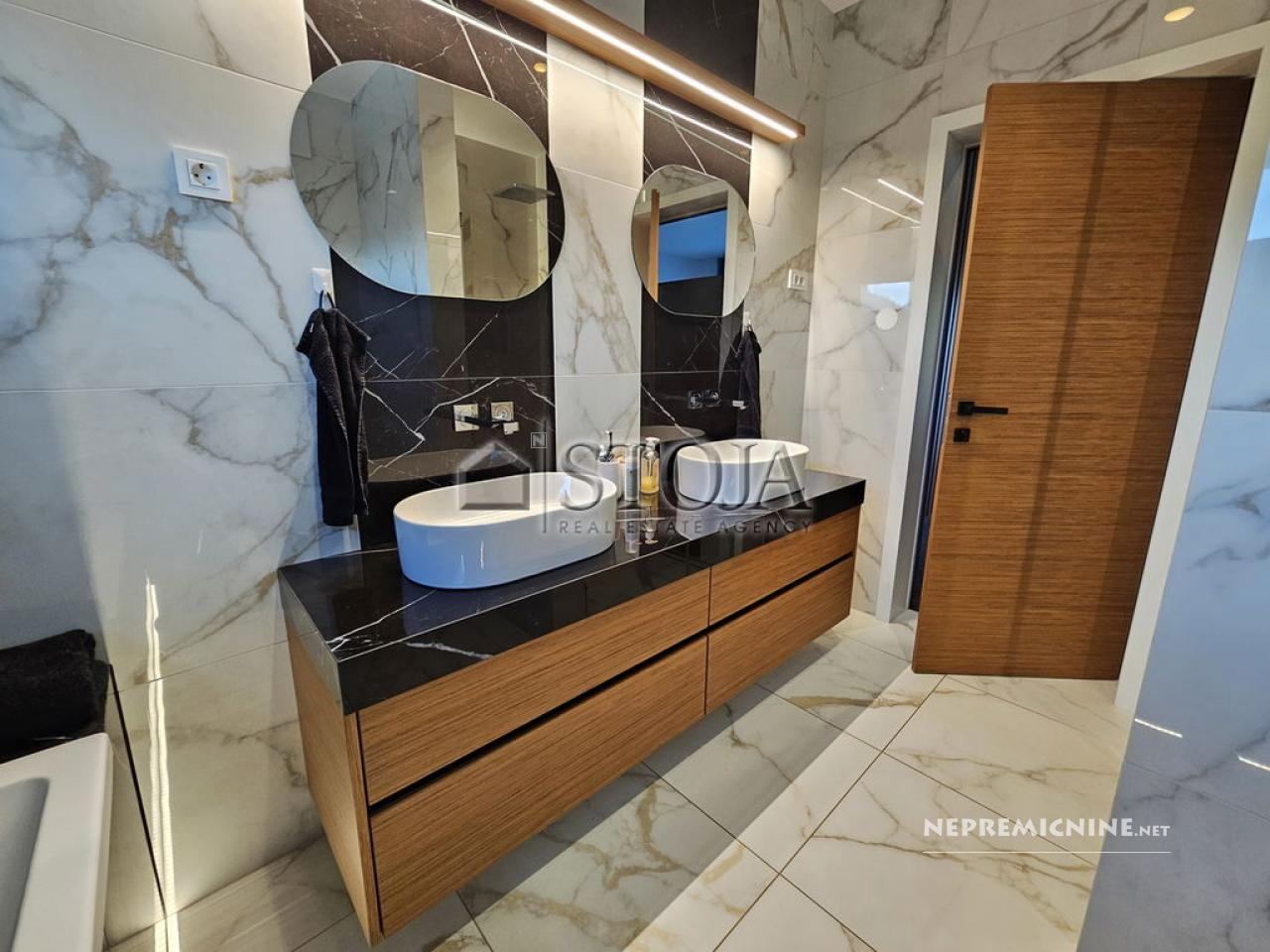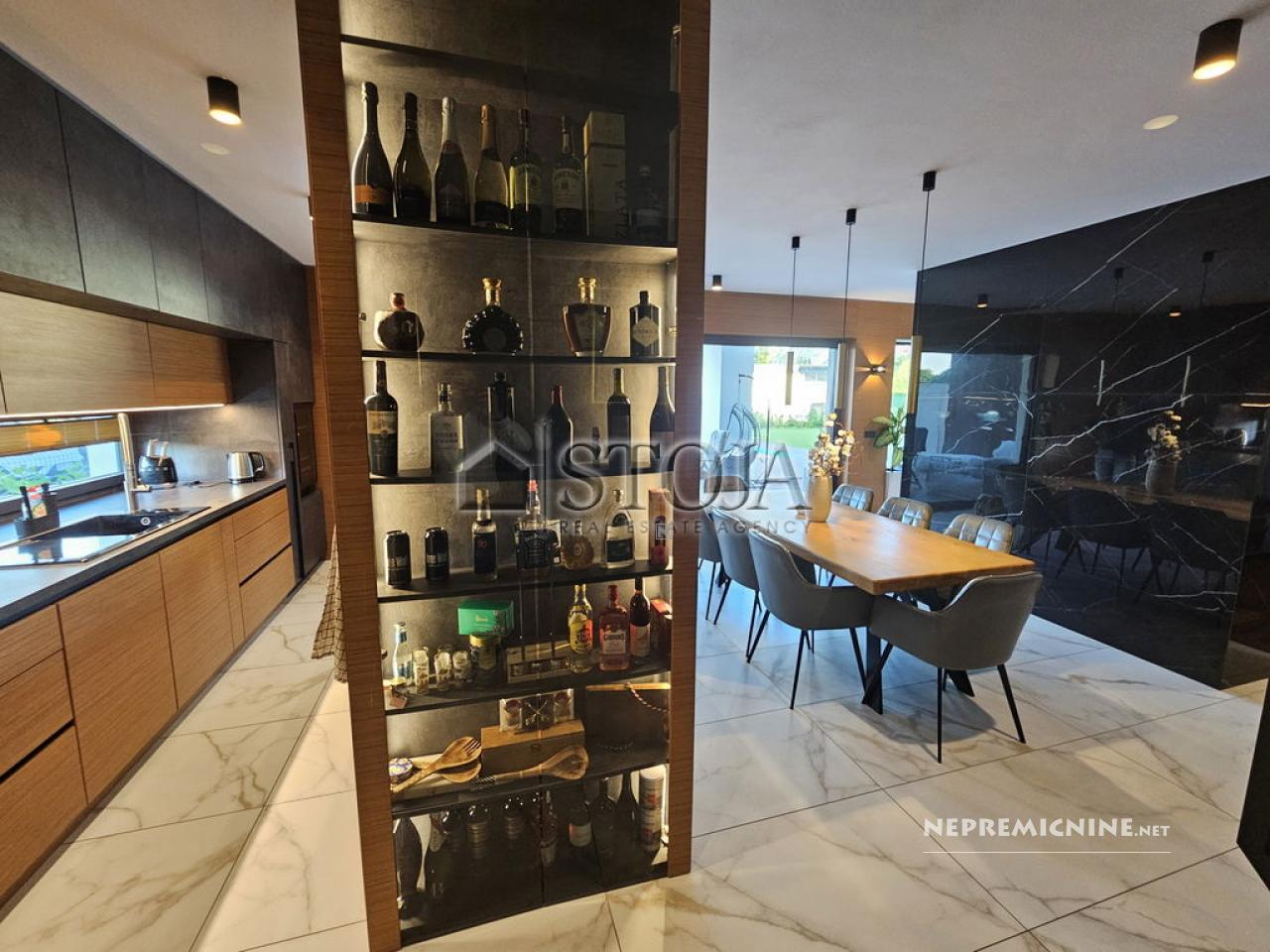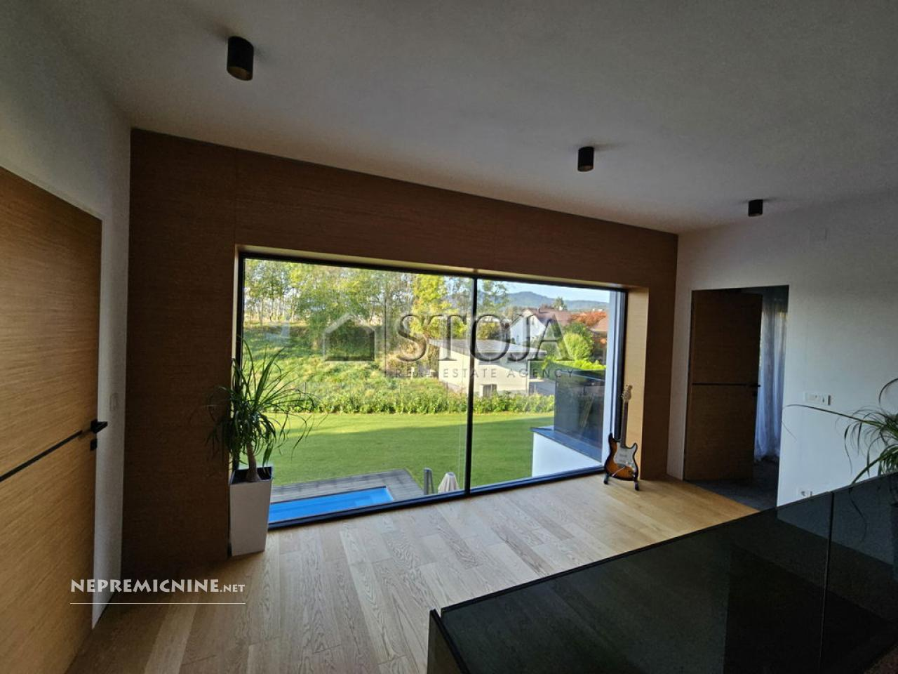 De villa is ontworpen voor de meest veeleisende kopers en biedt veel privacy. Het beschikt over een verwarmd zwembad, ideaal voor gebruik gedurende het grootste deel van het jaar. De woning bestaat uit twee verdiepingen met een ruime indeling. Op de begane grond vindt u een grote woonkamer met open plafond en toegang tot het terras, een moderne keuken met eetkamer, een apart toilet, een grote bijkeuken met douche, was- en droogmachine, centraal stofzuigsysteem en sauna. De bovenverdieping herbergt een master bedroom met eigen badkamer en inloopkast, drie extra kamers met toegang tot een groot balkon, een extra badkamer en een galerij. De villa is uitgerust met hoogwaardige materialen, vloerverwarming, een recuperatiesysteem in de slaapkamers, en een centrale stofzuiginstallatie.