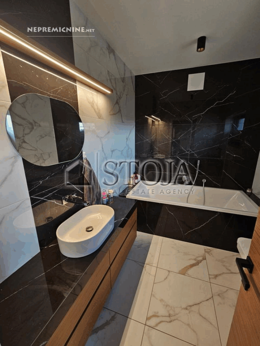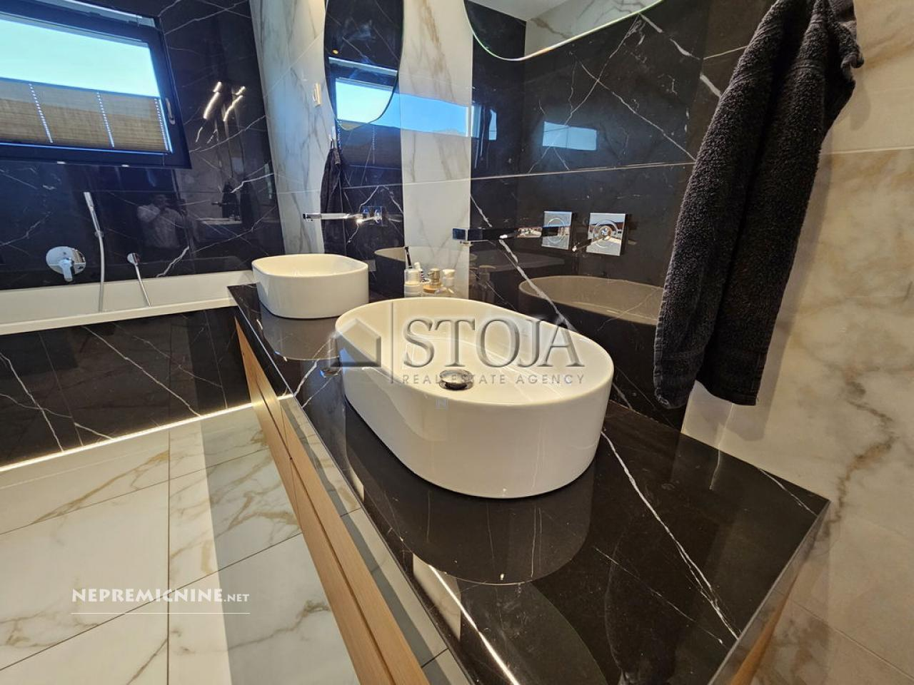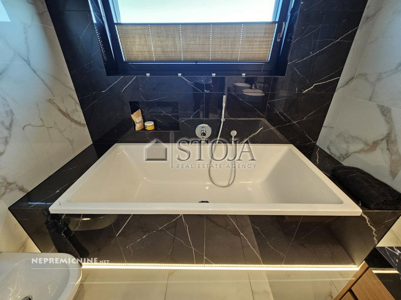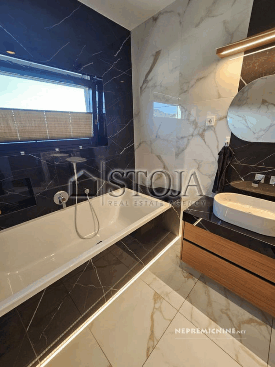 De villa is ontworpen voor de meest veeleisende kopers en biedt veel privacy. Het beschikt over een verwarmd zwembad, ideaal voor gebruik gedurende het grootste deel van het jaar. De woning bestaat uit twee verdiepingen met een ruime indeling. Op de begane grond vindt u een grote woonkamer met open plafond en toegang tot het terras, een moderne keuken met eetkamer, een apart toilet, een grote bijkeuken met douche, was- en droogmachine, centraal stofzuigsysteem en sauna. De bovenverdieping herbergt een master bedroom met eigen badkamer en inloopkast, drie extra kamers met toegang tot een groot balkon, een extra badkamer en een galerij. De villa is uitgerust met hoogwaardige materialen, vloerverwarming, een recuperatiesysteem in de slaapkamers, en een centrale stofzuiginstallatie.