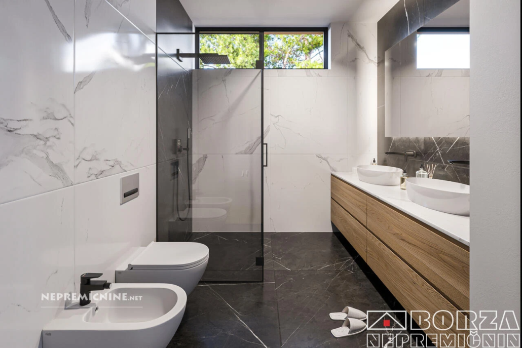 Ontdek deze prachtige, nieuw gebouwde vrijstaande woning in het rustige Latkova Vas, gelegen in de regio Savinjska. Deze luxe woning biedt een royale woonoppervlakte van 266 m² en is gelegen op een perceel van 716 m². De woning is ontworpen met hoogwaardige materialen, waaronder een AB-constructie, ALU-buitenkozijnen met driedubbele beglazing, en een moderne PVC-dakbedekking. De woning beschikt over een ruime woonkamer met eetkamer en keuken, drie slaapkamers, twee badkamers, en een extra kamer die kan dienen als gastenverblijf of ontspanningsruimte. De locatie is ideaal, met gemakkelijke toegang tot de snelweg en nabijgelegen voorzieningen zoals scholen, winkels, en gezondheidszorg. De regio Savinjska staat bekend om zijn prachtige natuur en biedt tal van recreatiemogelijkheden. Dit is een uitstekende kans voor investeerders die op zoek zijn naar een hoogwaardige woning in een gewilde omgeving.