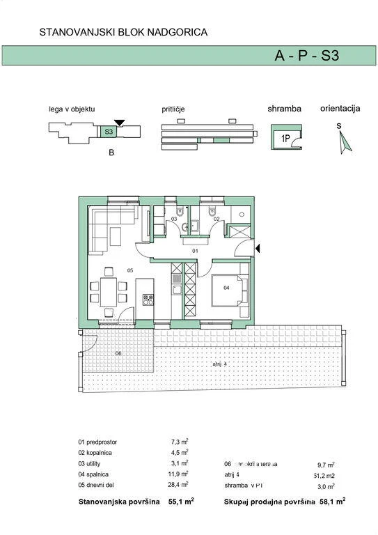 Dit prachtige 2-kamer appartement in Črnuče, Ljubljana, biedt een unieke kans om deel uit te maken van een moderne en duurzame woonomgeving. Gelegen in een nieuwbouwcomplex met 16 appartementen, variërend van compacte studio’s tot ruime 3-kamer eenheden, is dit appartement ideaal voor zowel individuen als gezinnen. Het appartement is ontworpen met hoogwaardige materialen en beschikt over uitstekende thermische isolatie, wat resulteert in een energiezuinige woning met energielabel A2. De moderne architectuur en functionele indeling maken het een aantrekkelijke keuze voor kopers. Het appartement beschikt over een ruime terras en een atrium, perfect voor buitenactiviteiten. Daarnaast is er een eigen parkeerplaats met voorbereiding voor een elektrische laadpaal. De omgeving biedt een rustige en vriendelijke sfeer met uitstekende verbindingen naar het stadscentrum, nabijheid van alle benodigde voorzieningen en de natuur. De locatie biedt snelle toegang tot de snelweg, LPP-bushaltes en het centrum van Ljubljana. Mis deze kans niet om deel uit te maken van deze moderne gemeenschap waar comfort en levenskwaliteit hand in hand gaan.