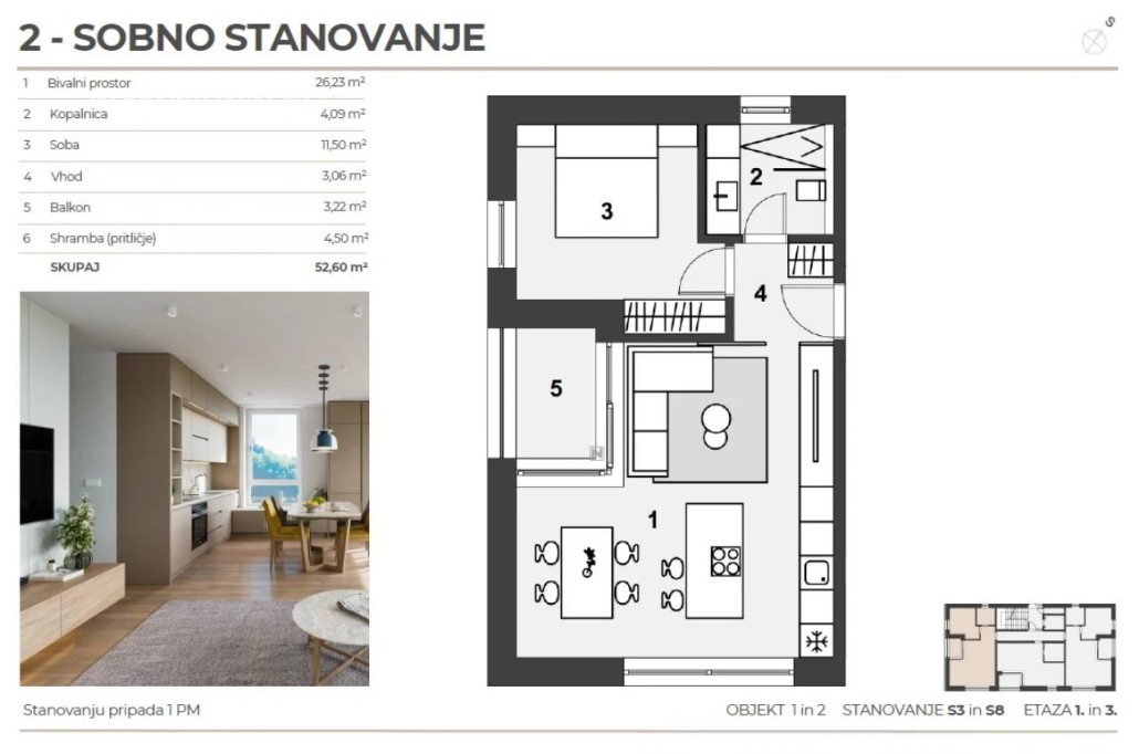 Dit moderne 2-kamer appartement in Podčetrtek biedt een unieke kans voor zowel investeerders als mensen die op zoek zijn naar een rustige woonomgeving. Gelegen in het nieuwe woonproject ‘Rezidenca Podčetrtek’, biedt dit appartement een balkon, een parkeerplaats en een prachtig uitzicht op de groene omgeving. Het appartement is ontworpen met grote glazen oppervlakken, hoge plafonds en uitstekende geluidsisolatie, wat zorgt voor een lichte en rustige leefruimte. De nabijheid van de beroemde Terme Podčetrtek maakt het ook ideaal voor vakantiegangers. De regio Savinjska staat bekend om zijn natuurlijke schoonheid en biedt tal van recreatiemogelijkheden zoals fietsen en wandelen in de nabijgelegen Boč, ook wel de ‘Štajerski Triglav’ genoemd. Alle essentiële voorzieningen zijn binnen handbereik, en de locatie biedt een hoge levenskwaliteit met toegang tot natuur en recreatie.