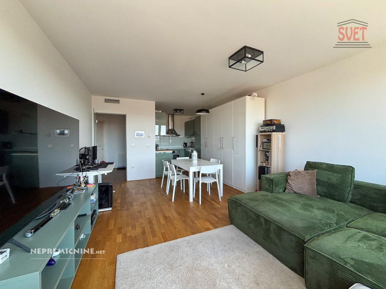Ontdek dit prachtige 2-kamer appartement in de Eko Srebrna Hiša, een van de eerste passieve woongebouwen in Slovenië, gebouwd in 2014. Dit appartement biedt een moderne en duurzame levensstijl met lage operationele kosten en een hoge woonkwaliteit. Het appartement is ruim en licht dankzij de grote glazen oppervlakken en westelijke oriëntatie, wat zorgt voor veel natuurlijk licht en een open uitzicht. De indeling is functioneel met een grote hal, badkamer, slaapkamer met balkon en een woonkamer met keuken. Het is volledig uitgerust met hoogwaardige meubels. Het appartement beschikt over een eigen parkeerplaats en een kelderberging, en biedt toegang tot een gemeenschappelijke fietsenstalling en bezoekersparkeerplaatsen. Verwarming is geregeld via een warmwatersysteem, ventilatie via rekuperatie, en er is een airconditioningsysteem dat kan worden bediend met een smart home-systeem. De unieke locatie biedt snelle toegang tot de ringweg en het stadscentrum, met alle belangrijke voorzieningen en infrastructuur (winkels, scholen, kinderdagverblijven, openbaar vervoer) in de directe omgeving. Het appartement heeft een geregeld kadaster, een bouw- en gebruiksvergunning en is vrij van lasten. Beschikbaar in overleg. Mis deze kans niet en plan een bezichtiging!