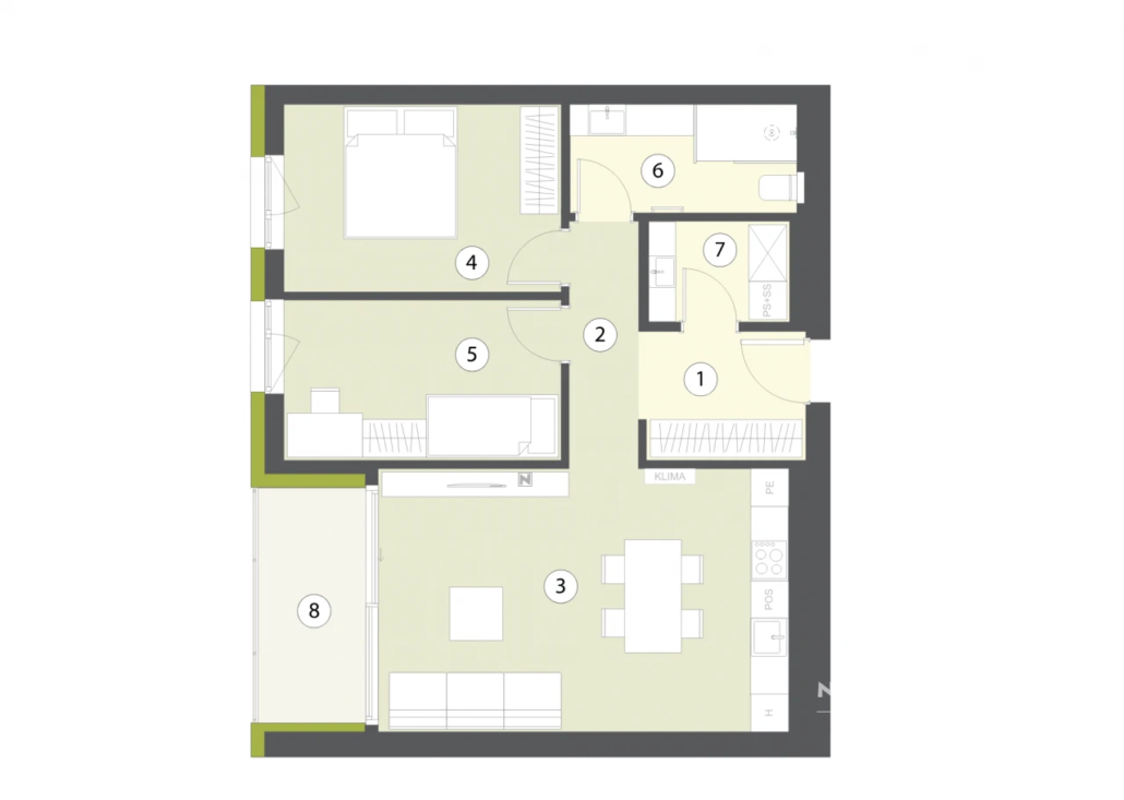 Ontdek het moderne leven in het hart van Kamnik met dit prachtige 3-kamer appartement in het Kamniški Biser complex. Dit nieuwbouwproject, gepland voor voltooiing in de herfst van 2027, biedt een unieke kans om te wonen in een omgeving die comfort en stijl combineert. Het appartement van 84,6 m² is gelegen op de derde verdieping van een vier verdiepingen tellend gebouw en beschikt over een ruime woonkamer met open keuken, twee comfortabele slaapkamers, een moderne badkamer en een balkon van 6 m² dat een verlengstuk van de leefruimte biedt. Het complex biedt tal van voorzieningen zoals een ondergrondse garage, een gemeenschappelijke tuin, een kinderspeelplaats en een groene parkzone. Kamnik, gelegen in de regio Ljubljana-okolica, is een charmante stad met een rijke geschiedenis en biedt gemakkelijke toegang tot winkels, restaurants en openbaar vervoer. De nabijheid van de Kamniško-Savinjske Alpen maakt het een ideale locatie voor natuurliefhebbers en avonturiers. Met hoogwaardige afwerkingen, zoals vloerverwarming, een warmtepomp en automatische jaloezieën, biedt dit appartement een luxueuze en energiezuinige woonervaring. Mis deze kans niet om deel uit te maken van de Kamniški Biser gemeenschap.