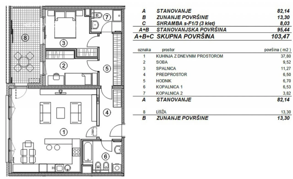 Dit prachtige 3-kamer appartement van 102,9 m² is gelegen in de gewilde wijk Šiška in Ljubljana, op slechts een steenworp afstand van het iconische Tivoli Park. Gelegen op de eerste verdieping van een modern, energiezuinig gebouw uit 2018, biedt dit appartement een perfecte mix van comfort en stijl. Het appartement beschikt over een ruime woonkamer met een open keuken en eetkamer, twee slaapkamers, een badkamer met douche en toilet, en een grote overdekte terras van 13,3 m². De woning is voorzien van vloerverwarming en airconditioning, en wordt deels gemeubileerd verkocht. Extra voorzieningen zijn onder andere een lift, een berging van 8 m², en twee eigen parkeerplaatsen in de ondergrondse garage, compleet met een oplaadpunt voor elektrische voertuigen. De locatie is ideaal voor gezinnen, stellen of investeerders, met nabijgelegen voorzieningen zoals scholen, winkels, en openbaar vervoer. Geniet van de nabijheid van het centrum van Ljubljana en de groene omgeving van Tivoli Park, perfect voor recreatie en ontspanning.