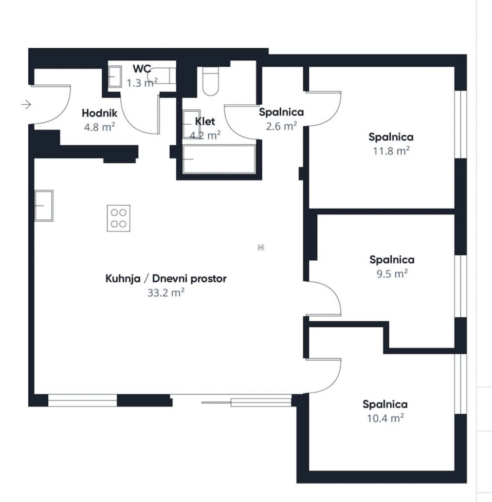 Modern en ruim 4-kamer appartement in Zelena Jama