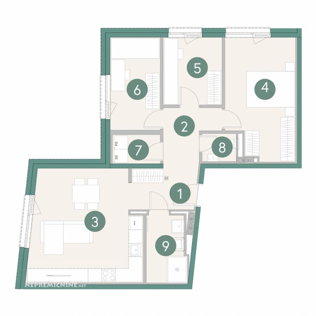 Ontdek het moderne leven in de nieuwe woonwijk Rezidenca Dravlje, gelegen in een rustige en groene omgeving aan de Šlosarjeva ulica. Dit ruime 4-slaapkamer appartement van 82,37 m² biedt een doordachte indeling voor een efficiënte benutting van de woonruimte. De woning is voorzien van vloerverwarming, airconditioning, ventilatie met luchtterugwinning en elektrische zonwering, wat zorgt voor een energiezuinige en comfortabele leefomgeving. De locatie is ideaal voor gezinnen, met scholen, kinderdagverblijven, winkels en speeltuinen in de buurt. Bovendien is er een snelle verbinding naar de ringweg en het centrum van Ljubljana. Geniet van uitstekende vervoersmogelijkheden, waaronder fietsinfrastructuur en openbaar vervoer. De regio Ljubljana biedt tal van toeristische attracties, zoals het historische centrum, het Tivoli Park en de nabijgelegen bergen voor buitenactiviteiten. Dit appartement is perfect voor wie op zoek is naar een nieuwe thuis of een investeringsmogelijkheid.