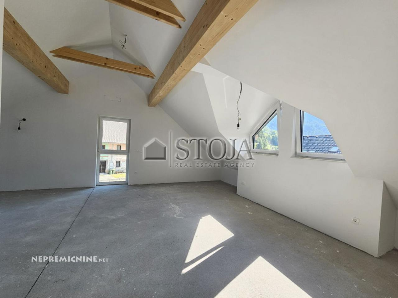 Ontdek deze prachtige nieuwbouw drie-onder-een-kap woningen in het schilderachtige Belca, gelegen in de regio Gorenjska. Deze moderne woningen bieden een perfecte combinatie van rust en toegang tot tal van recreatieve activiteiten, slechts 5 minuten rijden van het centrum van Kranjska Gora. De woningen zijn ontworpen met een focus op kwaliteit, functionaliteit en duurzaamheid, en zijn voorzien van een warmtepomp, ventilatiesysteem en vele voorbereidingen voor moderne gemakken. Geniet van de nabijheid van de Karavanken en de Zgornjesavska vallei, ideaal voor liefhebbers van skiën, fietsen en wandelen. Belca biedt een serene en veilige leefomgeving met gemakkelijke toegang tot toeristische attracties zoals Planica en de Tamar vallei. Elke woning beschikt over een zuidelijk gelegen terras, drie slaapkamers met balkons, en een open zolderruimte die naar wens kan worden ingericht. De omgeving is goed bereikbaar met een geasfalteerde toegangsweg en biedt uitstekende brandveiligheid en akoestische isolatie.