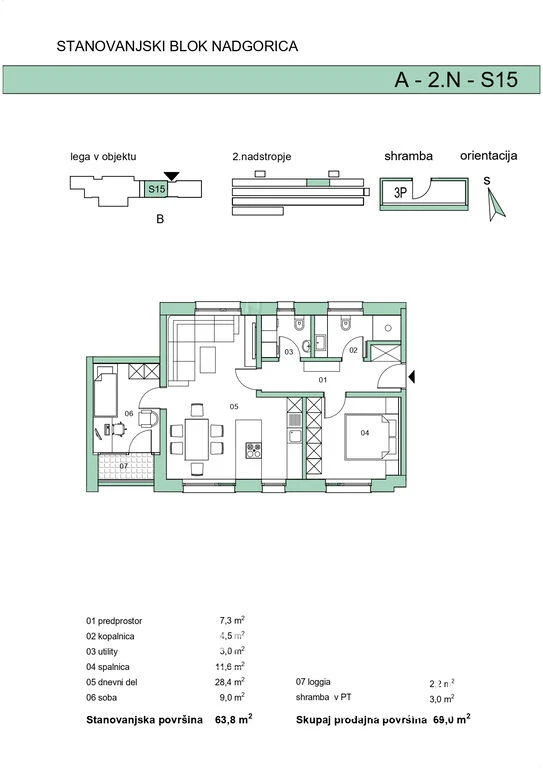 Dit prachtige driekamerappartement in Nadgorica biedt een unieke kans om deel uit te maken van een moderne en comfortabele woonomgeving. Gelegen in een nieuwbouwcomplex met 16 appartementen, variërend van compacte studio’s tot ruime driekamerwoningen, biedt deze woning een uitstekende combinatie van stijl en functionaliteit. Het appartement is ontworpen met hoogwaardige materialen en beschikt over een uitstekende thermische isolatie, waardoor het energieverbruik minimaal is (energieklasse A2). De moderne architectuur en de functionele indeling maken het appartement ideaal voor zowel individuen als gezinnen. De omgeving biedt een kindvriendelijke buurt met een speeltuin en andere recreatieve voorzieningen. Het appartement beschikt over een kelderberging en een parkeerplaats met voorbereiding voor een elektrische laadpaal. Geniet van het overdekte balkon dat een prachtig uitzicht biedt. De ligging in Nadgorica zorgt voor een rustige en vriendelijke omgeving met uitstekende verbindingen naar het stadscentrum, nabijheid van alle benodigde voorzieningen en de natuur. De locatie biedt snelle toegang tot de snelweg, het openbaar vervoer en het centrum van Ljubljana. Mis deze kans niet om te wonen in een moderne wijk waar comfort en kwaliteit van leven hand in hand gaan.