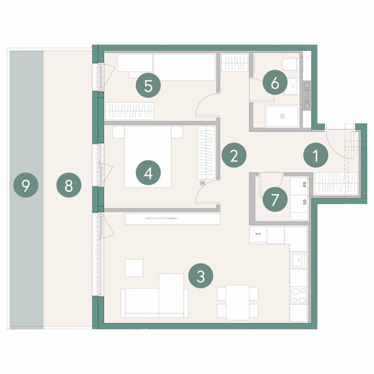 Ontdek de nieuwe woonwijk Rezidenca Dravlje, gelegen in een rustige en groene omgeving aan de Šlosarjeva ulica. Deze moderne driekamerwoning van 95,09 m² biedt een doordachte indeling voor een efficiënte benutting van de woonruimte. De woning is onderdeel van een complex met 71 zorgvuldig ontworpen appartementen, elk voorzien van minimaal één garageplaats. De energiezuinige appartementen van klasse A2-B1 zijn uitgerust met vloerverwarming, airconditioning, ventilatie met luchtterugwinning en elektrische zonwering. Dravlje biedt een uitstekende locatie met nabijheid van scholen, kinderdagverblijven, winkels en speeltuinen. De wijk is goed verbonden met het centrum van Ljubljana en de ringweg, en biedt uitstekende mobiliteitsopties zoals fietsinfrastructuur en openbaar vervoer. Geniet van de nabijheid van toeristische attracties zoals het Tivoli Park en het historische centrum van Ljubljana, en ervaar het comfort van een moderne en gezinsvriendelijke woonomgeving.