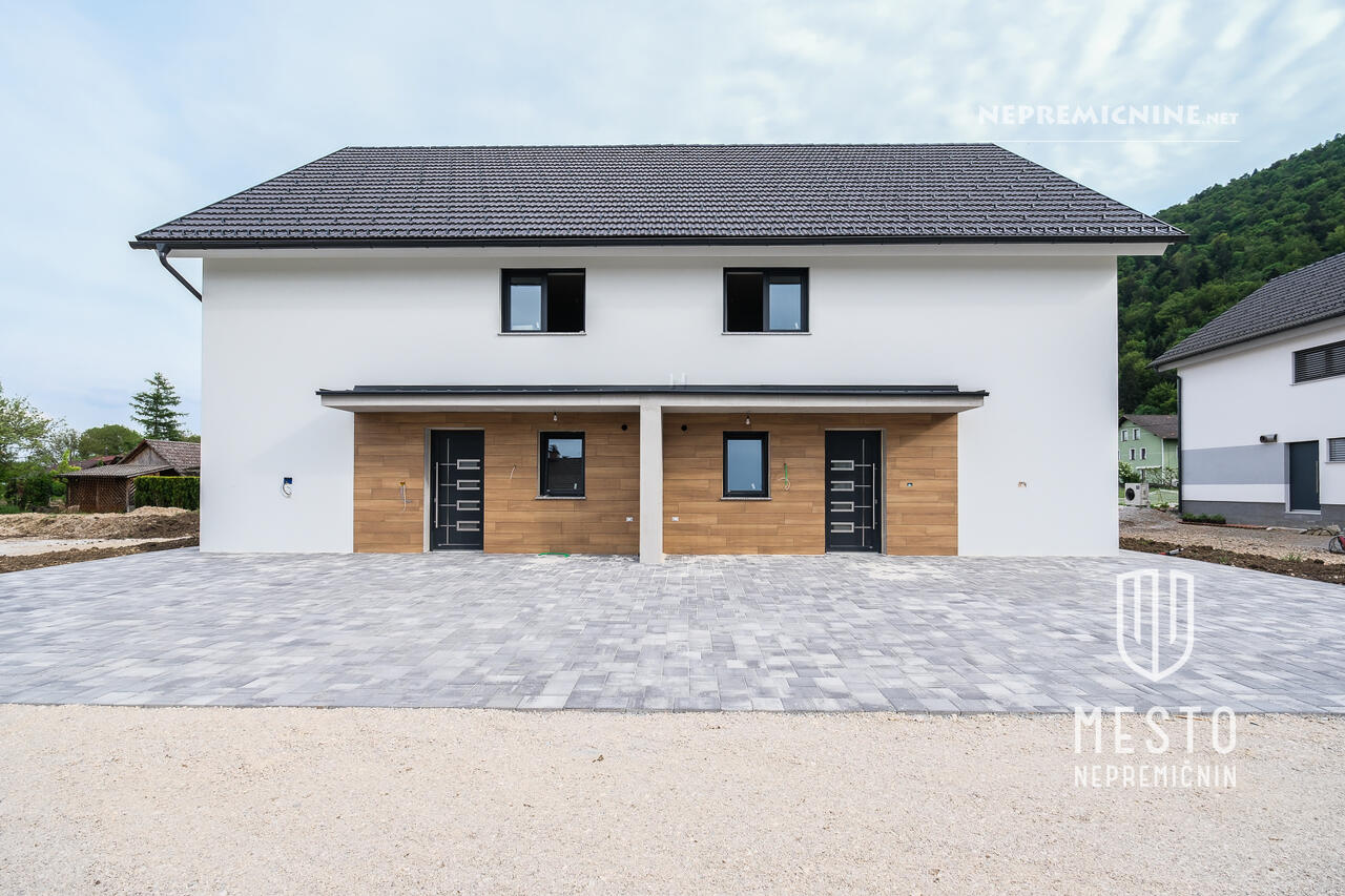 Ontdek deze moderne en zorgvuldig ontworpen dubbellevenheid in het rustige en groene dorp Tomišelj, nabij Ig. Deze woning biedt een perfecte balans tussen modern comfort en natuurlijke omgeving. Met een woonoppervlakte van 180 m² en een perceel van 500 m², biedt deze woning voldoende ruimte voor een gezin. De woning is gebouwd in een klassieke stijl met hoogwaardige materialen en beschikt over een atrium dat de binnenruimte met de natuur verbindt, ideaal voor zomerse en lenteavonden. De woning is gelegen aan het einde van een doodlopende straat, grenzend aan landbouwgrond, wat zorgt voor een rustige en veilige omgeving. De locatie biedt gemakkelijke toegang tot de stad Ljubljana, op slechts 9 km afstand, en is goed verbonden met openbaar vervoer. In de buurt vindt u een basisschool, een restaurant en groene recreatiegebieden. De woning is voorzien van moderne voorzieningen zoals drievoudige PVC-ramen met elektrische jaloezieën en een warmtepomp voor verwarming. De oplevering is gepland voor begin 2027, waardoor u voldoende tijd heeft om uw nieuwe thuis voor te bereiden.