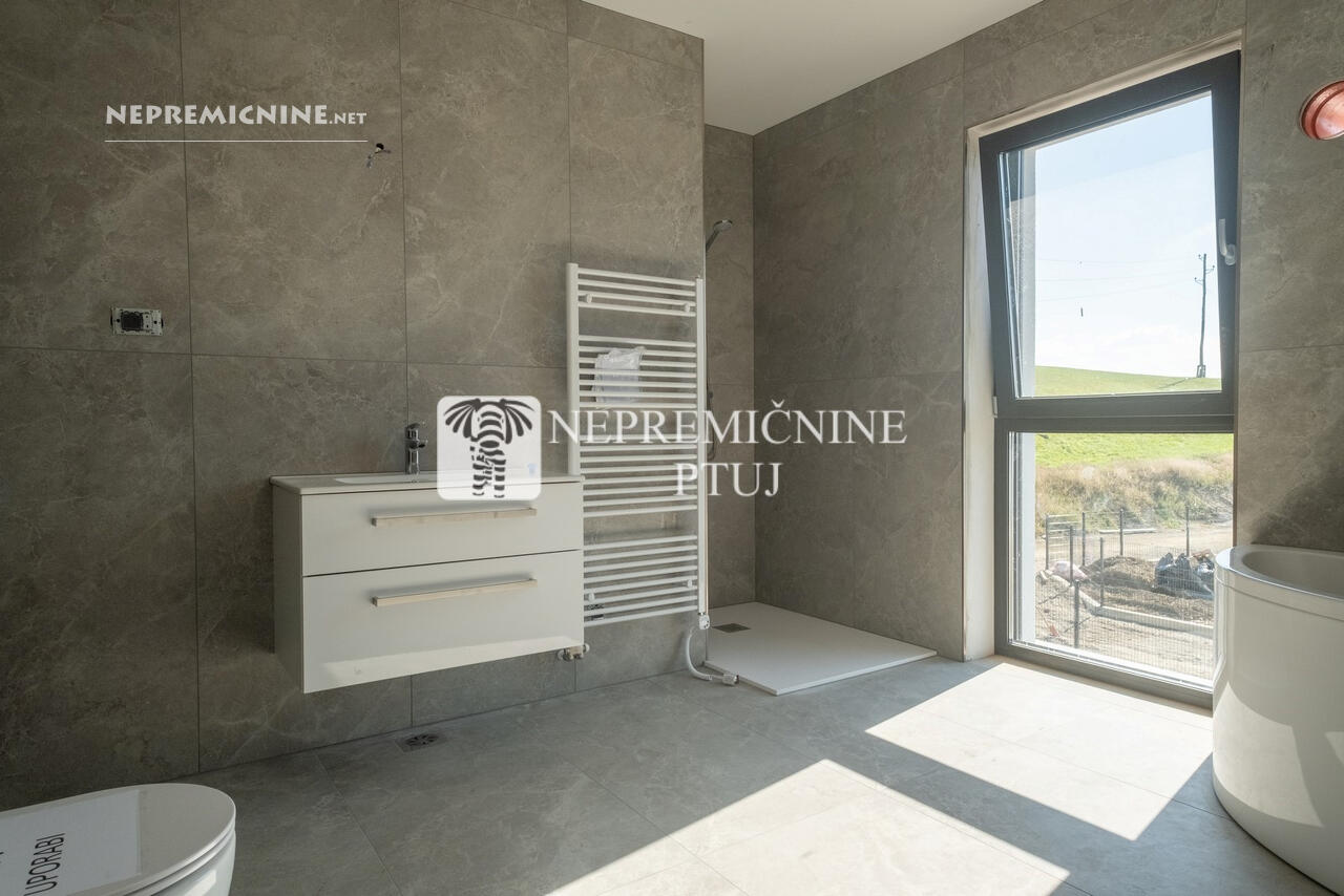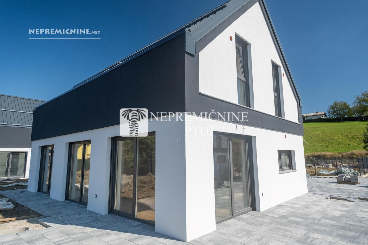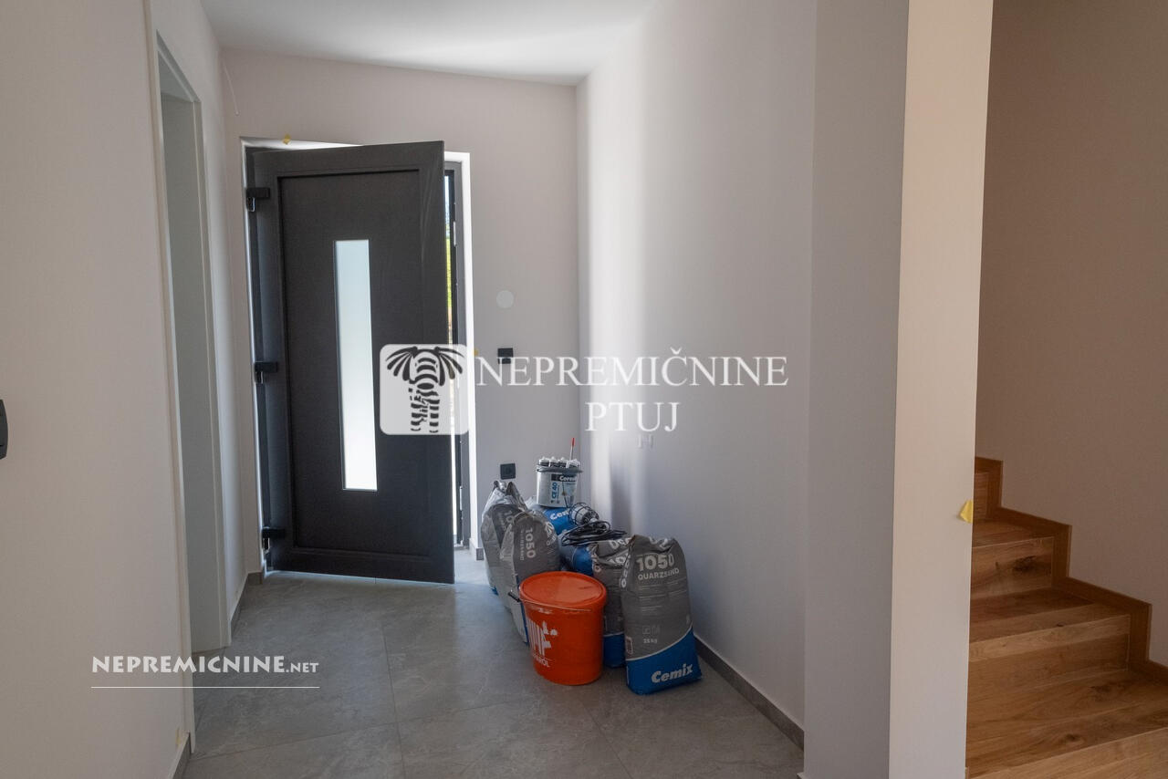 In het pittoreske Grajena, nabij Ptuj, bieden wij een moderne en nieuw gebouwde vrijstaande eengezinswoning aan. Deze woning, met een oppervlakte van 125,2 m², is ontworpen met oog voor detail en comfort. De woning is gebouwd in 2025 en beschikt over een perceel van 500 m². De woning is verdeeld over twee verdiepingen en biedt een ruime en lichte woonruimte met een moderne keuken, vier slaapkamers en een badkamer. De vloeren zijn afgewerkt met eiken parket en keramiek, en de woning is voorzien van vloerverwarming en een warmtepomp van het merk Wiessman. De energie-efficiëntie is uitstekend met een energielabel B2. De omgeving van Grajena biedt een rustige en groene leefomgeving met gemakkelijke toegang tot de stad Ptuj, bekend om zijn historische charme en culturele evenementen. In de buurt vindt u diverse winkels, restaurants en recreatiemogelijkheden. De regio Podravska staat bekend om zijn prachtige wijngaarden en toeristische attracties zoals het kasteel van Ptuj en de thermale baden. De woning is ideaal voor gezinnen en biedt voldoende parkeergelegenheid en een omheinde tuin.