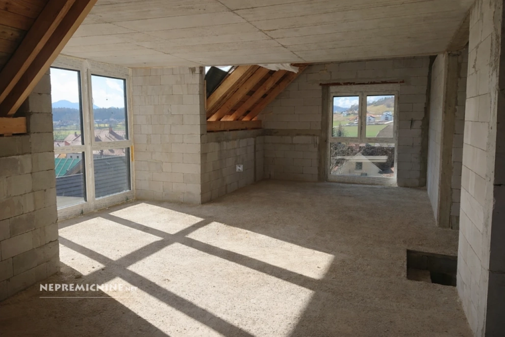 In het rustige en goed onderhouden deel van Vojnik, in een gebied voor individuele woningbouw, staat een moderne vrijstaande eengezinswoning te koop. Deze nieuwbouw is ontworpen met een duidelijke focus op comfortabel gezinsleven, energie-efficiëntie en de lange termijn waarde van het onroerend goed. De woning is gelegen op een verhoogd perceel, wat een open en prachtig uitzicht biedt op Vojnik en het omliggende landschap. Dankzij de doordachte plaatsing boven het niveau van de naburige gebouwen biedt het een gevoel van ruimte en privacy, aangezien er in de directe omgeving geen bestaande woonhuizen zijn. Ondanks de rustige en intieme ligging is de toegang tot alle belangrijke infrastructuur snel en eenvoudig. Dit is een ideale kans voor iedereen die op zoek is naar een kwalitatieve nieuwbouw in een aangename omgeving, waar privacy, uitzicht en goede verkeersverbindingen samenkomen. De woning wordt verkocht samen met twee percelen, wat zeldzaam is op de markt en een belangrijke troef vormt zowel vanuit woon- als investeringsperspectief. De totale oppervlakte van het land bedraagt 1.702 m² (ongeveer 1000m² is landbouwgrond) en omvat een ruim bouwperceel samen met extra land, wat veel vrijheid biedt bij de buiteninrichting, meer privacy en een lange termijn toegevoegde waarde van het onroerend goed. De woning is ontworpen als een gelijkvloers gebouw met een zolder, waarbij de indeling van de ruimtes ook de mogelijkheid biedt voor een tweewoonst, ideaal voor intergenerationeel wonen. Elke verdieping is zo ontworpen dat het mogelijk is een volledig apart appartement te realiseren, en de verdiepingen zijn uitsluitend verbonden door een interne trap. Deze opzet maakt het mogelijk voor meerdere generaties om samen onder één dak te wonen, terwijl privacy, zelfstandigheid en kwaliteit van leven voor elke familie afzonderlijk behouden blijven. In de begane grond, die ongeveer 90,7 m² netto woonoppervlakte beslaat, is een open en lichte woonruimte met keuken en eetkamer (uitgang naar het terras), slaapkamer, badkamer en technische ruimte voorzien. De ruimte is zo ontworpen dat het een moderne manier van leven mogelijk maakt met een directe verbinding van het interieur met de buitenruimtes. De zolder meet ongeveer 89,8 m² netto oppervlakte en is bedoeld voor slaapruimtes. De indeling biedt meerdere kamers, kleedkamers en een badkamer, met veel flexibiliteit bij de uiteindelijke inrichting afhankelijk van de behoeften van de toekomstige eigenaren. De totale netto woonoppervlakte van het huis bedraagt ongeveer 180 m², wat een uitzonderlijk comfortabel leven mogelijk maakt voor een groter gezin of een functionele inrichting van twee aparte appartementen voor intergenerationeel wonen of investeringsgebruik. Het grondplanontwerp biedt een hoge mate van privacy tussen de verdiepingen, terwijl de verbondenheid van het gebouw als geheel behouden blijft. Op het perceel is ook een overdekte parkeerplaats (garage) voor twee voertuigen met een oppervlakte van ongeveer 54 m², die al in de verkoopprijs is inbegrepen en de bruikbare en marktwaarde van het onroerend goed verder verhoogt. De woning wordt verkocht in de derde gedeeltelijk verlengde bouwfase (het bouwbeslag is al geïnstalleerd, de gevels nog niet), wat betekent dat alle belangrijke bouwwerkzaamheden zijn uitgevoerd, maar de nieuwe eigenaar nog steeds de mogelijkheid heeft om het interieur volledig naar eigen smaak af te werken. Het huis is gebouwd van 30 cm Ytong (siporex) blokken, die zorgen voor goede thermische en geluidsisolatie en een gezond binnenklimaat. Er zijn hoogwaardige driedubbele ramen van MIK Celje geïnstalleerd, gedeeltelijk uitgerust met horren, plissé zonwering en rolluiken, wat al in deze fase een hoge woonstandaard en goede bescherming van het gebouw garandeert. Achter het huis is al een keermuur gebouwd (met alle vergunningen), wat praktisch betekent dat het huis ook aan de achterkant beschermd is tegen grond of de aanleg van een geplaveid pad rondom het huis mogelijk maakt. Vojnik wordt beschouwd als een van de meer gewilde woonlocaties in de bredere regio van Celje. Het biedt een rustige, goed onderhouden omgeving met alle benodigde infrastructuur in de buurt – kleuterschool, school, winkels, medische diensten en recreatiegebieden. Celje is ongeveer 10-15 minuten rijden, wat de locatie ideaal maakt voor dagelijkse migraties, terwijl de kwaliteit van leven buiten de stadsdrukte behouden blijft. Dit is een uitstekende kans voor kopers die op zoek zijn naar een kwalitatieve nieuwbouw met de mogelijkheid om af te werken naar eigen wensen, een groter perceel en een locatie met lange termijn waarde. De combinatie van twee percelen, modern ontwerp, bewezen materialen en een rustige omgeving biedt een zeer concurrerend aanbod op de markt.