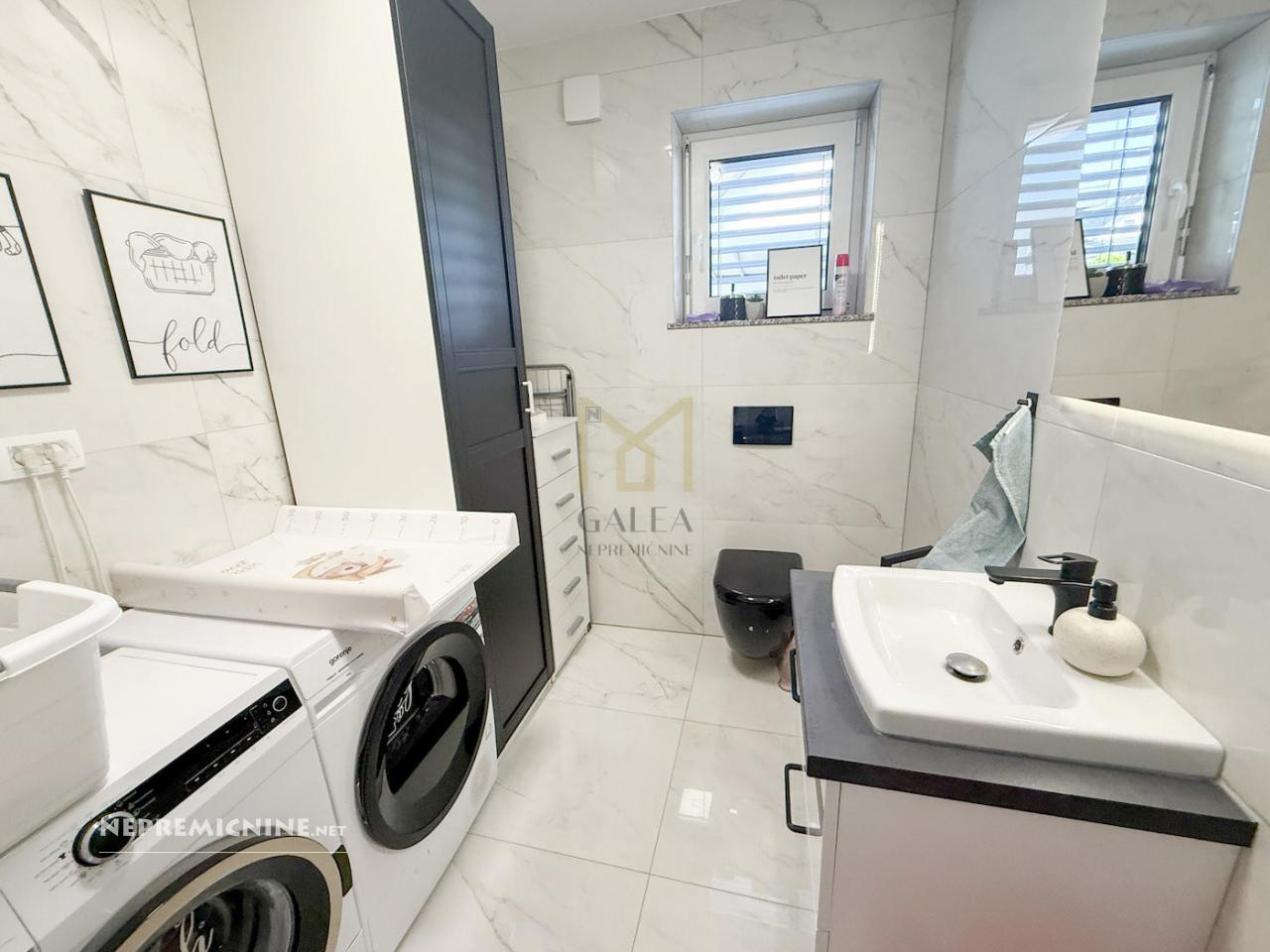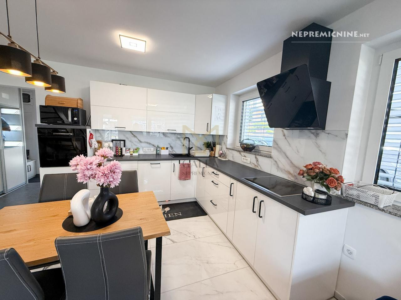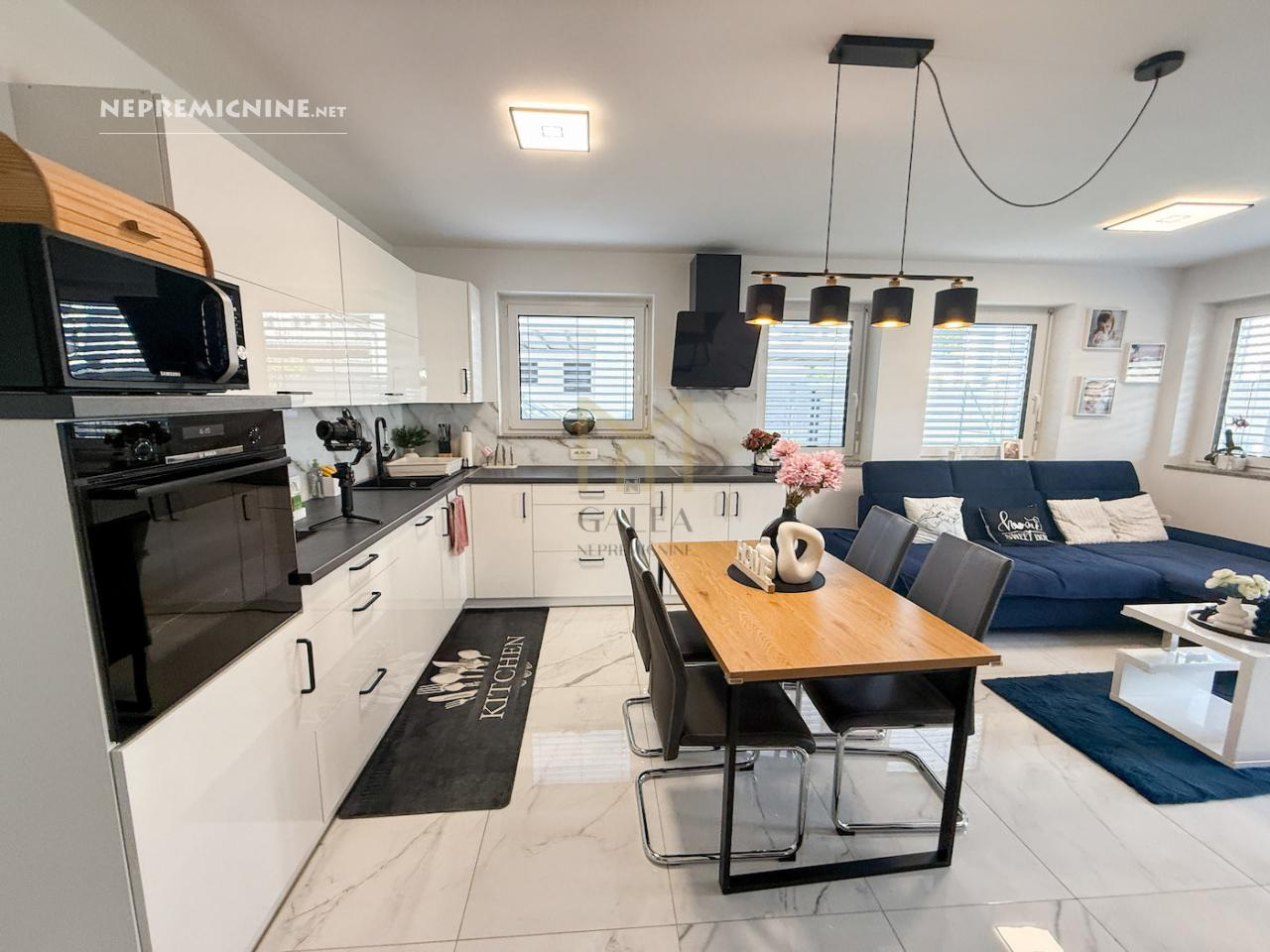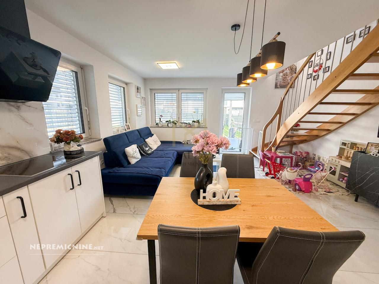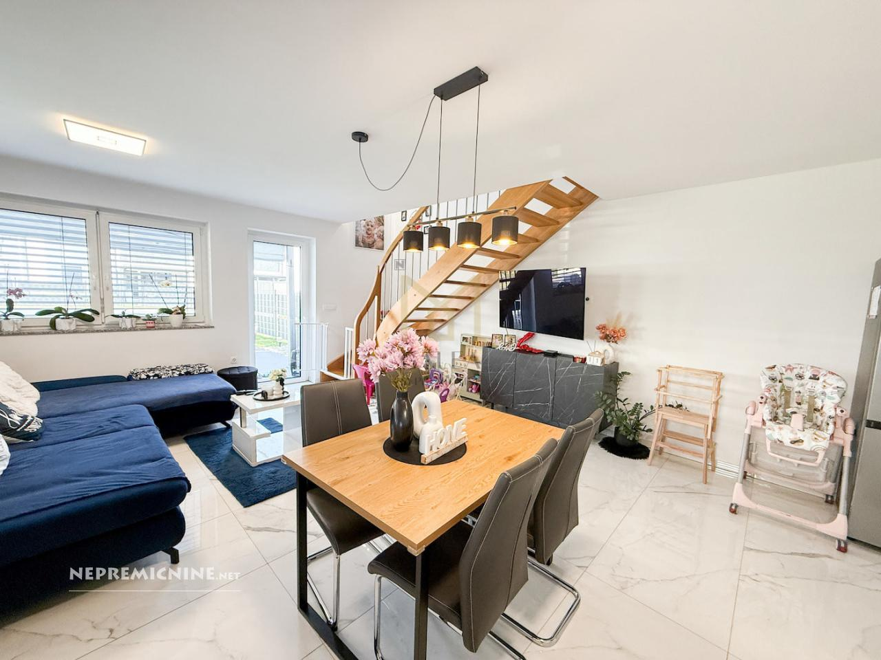 Ontdek deze prachtige moderne eenheid van een rijtjeshuis in Benedikt, gebouwd in 2021. Deze woning biedt een eigentijds ontwerp met een focus op comfort en energiezuinigheid, ideaal voor moderne gezinnen. De woning beschikt over extra geïsoleerde buitenmuren en een uitstekend geïsoleerd dak. Het huis is voorzien van een warmtepomp voor verwarming en sanitair water, en vloerverwarming door het hele huis voor extra comfort. De indeling omvat een begane grond met een keuken, eetkamer, woonkamer, bijkeuken en toilet, en een zolder met een slaapkamer, kinderkamer en badkamer. De ruime kavel biedt een terras voor ontspanning en sociale bijeenkomsten. Benedikt ligt in de regio Podravska, bekend om zijn prachtige natuur en nabijheid van voorzieningen zoals winkels en restaurants. De regio biedt ook goede vervoersmogelijkheden en een vriendelijke buurtomgeving.