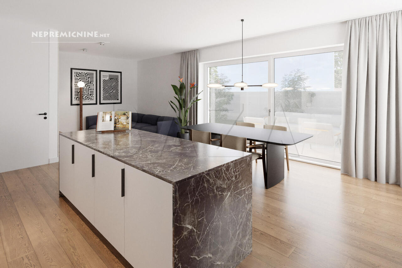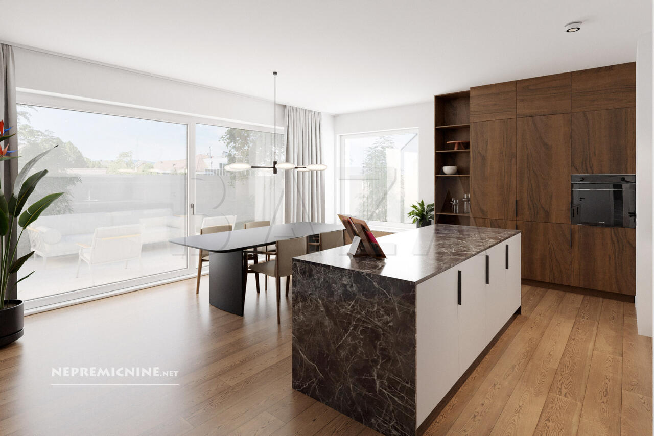 Ontdek deze prachtige moderne gezinswoning in de gewilde wijk Rožna Dolina, Ljubljana. Deze nieuwbouw, gepland voor voltooiing in september 2025, biedt een ruime woonoppervlakte van 146 m² met een extra dakterras van 30,4 m². De woning is ontworpen met de nieuwste technologieën en hoogwaardige materialen, wat resulteert in een energiezuinige en comfortabele leefomgeving. De woning beschikt over vier slaapkamers, twee badkamers, een apart toilet, en een open woonruimte met keuken en eetkamer die toegang biedt tot een groene tuin. De ligging in Rožna Dolina biedt een perfecte balans tussen natuur en stad, met nabijgelegen recreatiegebieden zoals Tivoli en Rožnik, en snelle toegang tot het stadscentrum. In de buurt vindt u alle benodigde voorzieningen zoals scholen, kinderdagverblijven, en openbaar vervoer. De woning is voorzien van vloerverwarming, een warmtepomp, en optisch internet. Er zijn twee eigen parkeerplaatsen beschikbaar. Deze woning is ideaal voor gezinnen die op zoek zijn naar een moderne en comfortabele leefomgeving in een van de beste wijken van Ljubljana.
