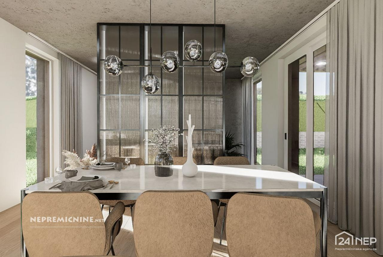 Ontdek deze moderne halfvrijstaande woning in het charmante Zgornji Duplek, gelegen aan het einde van een doodlopende straat. Deze nieuwbouw, gepland voor voltooiing in 2025, biedt een perfecte mix van hedendaagse architectuur en comfort. Met een woonoppervlakte van 209,91 m² en een perceel van 350 m², is deze woning ideaal voor gezinnen die op zoek zijn naar een rustige en veilige leefomgeving. De woning beschikt over drie slaapkamers en twee badkamers, en is uitgerust met hoogwaardige materialen zoals drievoudig beglaasde PVC-ramen, een aluminium voordeur met vingerafdrukherkenning, en een centrale ventilatiesysteem van Toshiba. De omgeving biedt tal van recreatiemogelijkheden dankzij de nabijheid van een natuurpark, terwijl alle noodzakelijke voorzieningen zoals scholen en een nieuw winkelcentrum binnen handbereik zijn. Geniet van de privacy van een betegeld terras met een bioklimatische pergola en een overdekte parkeerplaats voor twee auto’s. Deze woning is een uitstekende keuze voor wie op zoek is naar een moderne, comfortabele en goed gelegen woning in de regio Podravska.