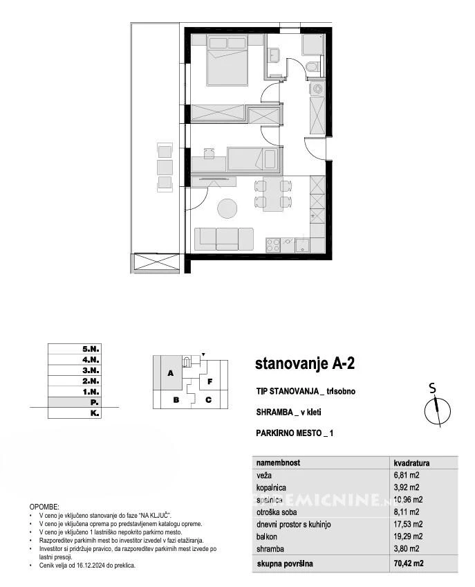 Ontdek dit prachtige nieuwbouw 3-kamer appartement in Velenje, gelegen in een rustige omgeving met nabijheid van scholen, kinderdagverblijven en recreatiegebieden. Dit appartement maakt deel uit van het ‘Kolodvorska Velenje’ project en biedt een moderne en energiezuinige woonervaring. Het appartement bevindt zich op de begane grond en beschikt over een balkon van 19,29 m², een eigen parkeerplaats en een berging in de kelder. De oplevering is gepland voor 31 maart 2027. Velenje is een charmante stad in de regio Savinjska, bekend om zijn groene omgeving en uitstekende infrastructuur. Geniet van de nabijheid van de natuur, restaurants en het stadscentrum. Dit is een ideale woning voor gezinnen, stellen en senioren die op zoek zijn naar comfort en gemak.