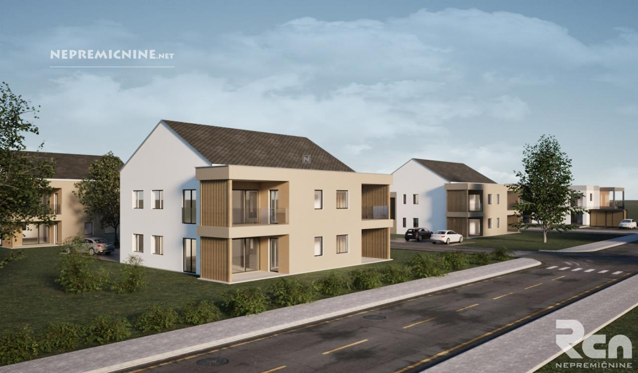 Ontdek het moderne 3,5-kamer appartement in het pittoreske Turnišče, gelegen in de regio Pomurska. Dit nieuwbouwproject, onderdeel van het prestigieuze Hiše Pasike, biedt een uitzonderlijke woonkwaliteit met gebruik van natuurlijke materialen en energie-efficiënte technologieën. Het appartement heeft een netto woonoppervlakte van 77 m² en beschikt over een ruime terras van 13,24 m² en een eigen tuin van 169 m². De indeling is functioneel en modern, met een ruime woonkamer van 29 m² die naadloos overgaat in de eetkamer en keuken, en toegang biedt tot het terras. De woning is voorzien van vloerverwarming, een warmtepomp en airconditioning voor optimaal comfort. De omgeving van Turnišče biedt een rustige sfeer met rijke culturele erfgoed en uitstekende verbindingen naar stedelijke centra. Nabijgelegen voorzieningen omvatten een bushalte, winkels op slechts 300 meter afstand, een basisschool, een kleuterschool, een gezondheidscentrum en diverse overheidsdiensten. Murska Sobota, het regionale centrum, ligt op slechts 17 km afstand, wat ongeveer 15 minuten rijden is. Dit appartement is ideaal voor moderne gezinnen of individuen die op zoek zijn naar een comfortabele en duurzame woonomgeving.