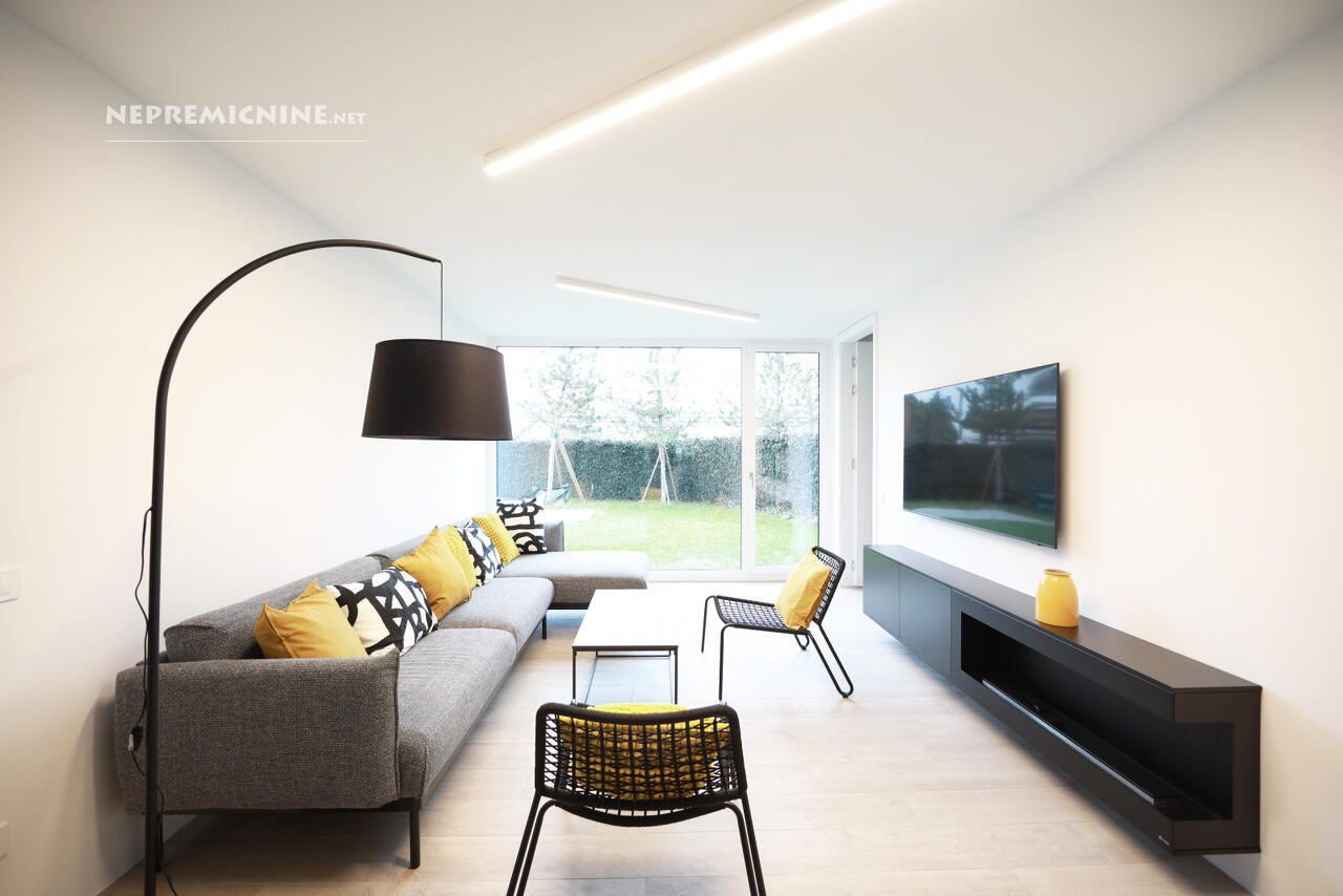 Dit moderne, nieuw ontworpen gelijkvloers appartement in Vižmarje, Ljubljana, biedt een unieke woonervaring met een eigen groene atrium. Het appartement beschikt over drie slaapkamers, twee badkamers, en een ruime woonruimte die via grote glazen oppervlakken verbonden is met een privé atrium van 153 m². Het is gebouwd met de beste materialen en uitgerust met de nieuwste technologieën, waaronder een warmtepomp en airconditioning. Gelegen in een rustige buurt met goede infrastructuur, nabij belangrijke openbare voorzieningen. De regio biedt gemakkelijke toegang tot winkels, restaurants en openbaar vervoer, en ligt dicht bij toeristische attracties zoals het Tivoli Park en het historische centrum van Ljubljana.