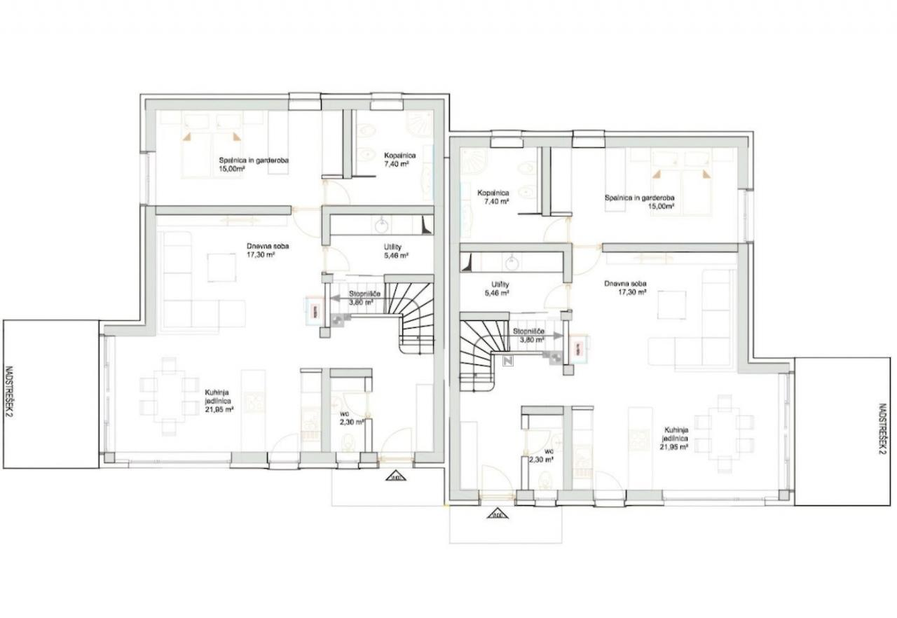Ontdek deze prachtige nieuwbouw rijtjeshuis in de opkomende wijk van Rakek, gelegen in de schilderachtige regio Notranjska. Deze moderne gezinswoning biedt een royale woonoppervlakte van 150,3 m² en is gebouwd in 2025. Het huis beschikt over drie ruime slaapkamers en twee badkamers, ideaal voor gezinnen. Geniet van de luxe van vloerverwarming, een warmtepomp en airconditioning. De woning is voorzien van een terras, een tuin en een garage, met maar liefst vier eigen parkeerplaatsen. De energiezuinige B1-label garandeert lage energiekosten. De omgeving biedt tal van recreatiemogelijkheden, met nabijgelegen natuurgebieden en een prachtig uitzicht op het noordelijke Primorska-gebergte. De nabijheid van scholen, kinderdagverblijven, en het centrum maakt het een perfecte locatie voor gezinnen. Bovendien is de woning goed bereikbaar met het openbaar vervoer en ligt het dicht bij de snelweg. Mis deze kans niet om eigenaar te worden van een woning in deze veelbelovende buurt.