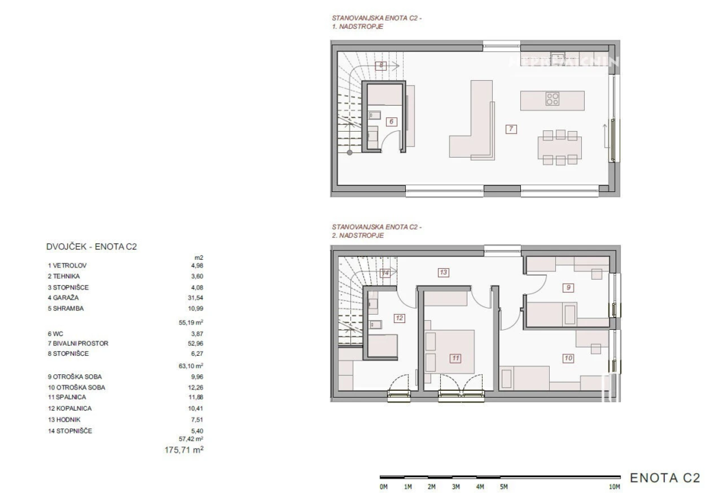 Ontdek deze prachtige nieuwbouw rijtjeshuis in het rustige en groene Senožeti, nabij Ljubljana. Deze moderne woning biedt een unieke kans om te wonen in een harmonieuze omgeving waar natuur en stedelijk comfort samenkomen. De woning heeft een speelse indeling met veel natuurlijk licht en een moderne architectuur. Op de begane grond bevindt zich een ruime garage voor twee auto’s en een opslagruimte. De eerste verdieping biedt een open woonruimte met toegang tot een terras, terwijl de slaapkamers op de tweede verdieping zorgen voor privacy. De woning wordt gebouwd met hoogwaardige materialen, waaronder baksteen en gewapend beton, en biedt de mogelijkheid om de afwerking naar eigen wens te voltooien. De omgeving biedt uitstekende vervoersverbindingen naar Ljubljana en is rijk aan lokale voorzieningen, boerderijen, sport- en recreatiegebieden en culturele activiteiten. Dit is een unieke kans om een nieuw thuis te creëren in een gemeenschap van zorgvuldig ontworpen huizen, waar natuur en stedelijk comfort samenkomen.