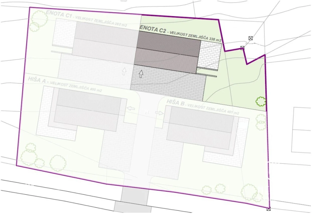Ontdek deze prachtige nieuwbouw rijtjeshuis in Senožeti, gelegen in de groene gemeente Dol pri Ljubljani. Deze moderne woning biedt een ruime woonoppervlakte van 175,71 m² en een perceel van 338 m². De woning is ontworpen met veel natuurlijke lichtinval dankzij de grote glazen oppervlakken en een speelse plattegrond. De begane grond beschikt over een garage voor twee auto’s en een ruime berging. Op de eerste verdieping bevindt zich een open woonruimte met een keuken en eetkamer, terwijl de slaapkamers op de tweede verdieping zijn gesitueerd voor extra privacy. De woning wordt gebouwd met hoogwaardige materialen en biedt de mogelijkheid tot afwerking naar eigen wens. De omgeving biedt uitstekende vervoersverbindingen naar Ljubljana, dat slechts 17 kilometer verderop ligt. Senožeti staat bekend om zijn hoge levenskwaliteit, met tal van recreatieve mogelijkheden, lokale boerderijen en een rijk cultureel erfgoed. Dit is een unieke kans om een nieuw thuis te creëren in een rustige, natuurlijke omgeving met stedelijk comfort binnen handbereik.