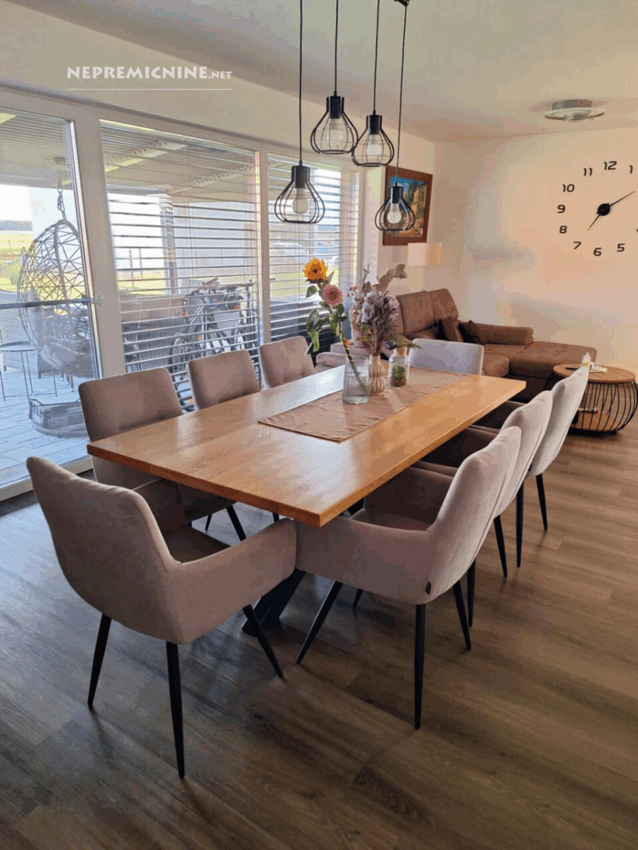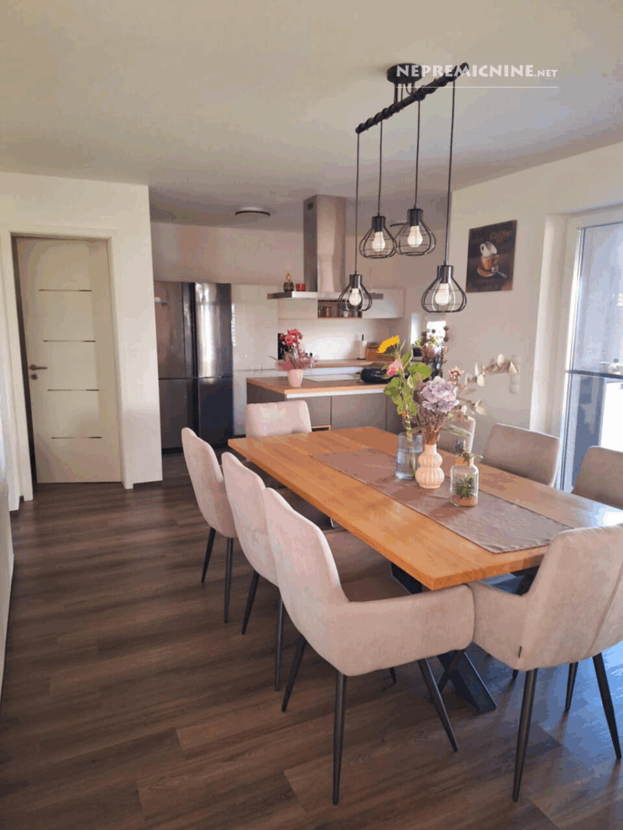 Deze prachtige nieuwbouw woning, gebouwd in 2022, bevindt zich in het charmante dorpje Dornava. Met een woonoppervlakte van 131 m² en een perceel van 630 m² biedt deze vrijstaande woning een moderne en comfortabele leefomgeving. De woning beschikt over een ruime keuken, eetkamer en woonkamer met een open en luchtige plattegrond. Vanuit de woonkamer heeft u toegang tot een overdekt terras. Op de bovenverdieping vindt u een grote slaapkamer en twee extra kamers. De badkamer is uitgerust met een douche en er is ruimte voor een bad. De woning wordt volledig gemeubileerd verkocht en is voorzien van een demit gevel met 20 cm isolatie. Verwarming gebeurt via een warmtepomp. De tuin is netjes aangelegd met een irrigatiesysteem en een robotmaaier. In de omgeving vindt u alle nodige infrastructuur zoals een kleuterschool, school, winkel, postkantoor en dokter. Dornava ligt in de regio Podravska, bekend om zijn prachtige natuur en recreatiemogelijkheden. Het is een ideale plek voor gezinnen of koppels die op zoek zijn naar een woning met buitenruimte. Nabijgelegen toeristische attracties zijn onder andere het historische stadje Ptuj en de schilderachtige wijnroutes van de regio.