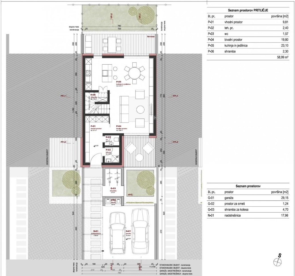 Ontdek de moderne en energiezuinige rijtjeshuis in de rustige en groene omgeving van Bistrica ob Dravi, ideaal voor jonge gezinnen en stellen. Deze nieuwbouw, gepland voor 2024, biedt een hoogwaardige constructie met een eigentijdse uitstraling en moderne plattegronden. De woning beschikt over een carport voor twee auto’s, inbraakwerende voordeuren en een serene omgeving voor een kwaliteitsvol leven. De wijk Sončne Rezidence Vivendi bestaat uit 19 nieuwe wooneenheden met aantrekkelijke ontwerpen en doordachte indelingen, perfect voor comfortabel en praktisch wonen. De woning is verdeeld over twee verdiepingen en biedt voldoende privacy en aangename buitenruimtes, ideaal voor gezinnen en liefhebbers van het buitenleven. Nabijgelegen voorzieningen zijn onder andere een café op 110 meter, een treinstation op 150 meter voor snelle toegang tot Maribor, een kleuterschool op 350 meter, een winkel op 400 meter en een speeltuin op 500 meter. De locatie is perfect voor iedereen die rustig wil wonen maar toch dicht bij de stad en dagelijkse voorzieningen wil blijven. De regio Podravska biedt prachtige natuurlijke landschappen en is een uitstekende uitvalsbasis voor het verkennen van de nabijgelegen stad Maribor en andere toeristische attracties.