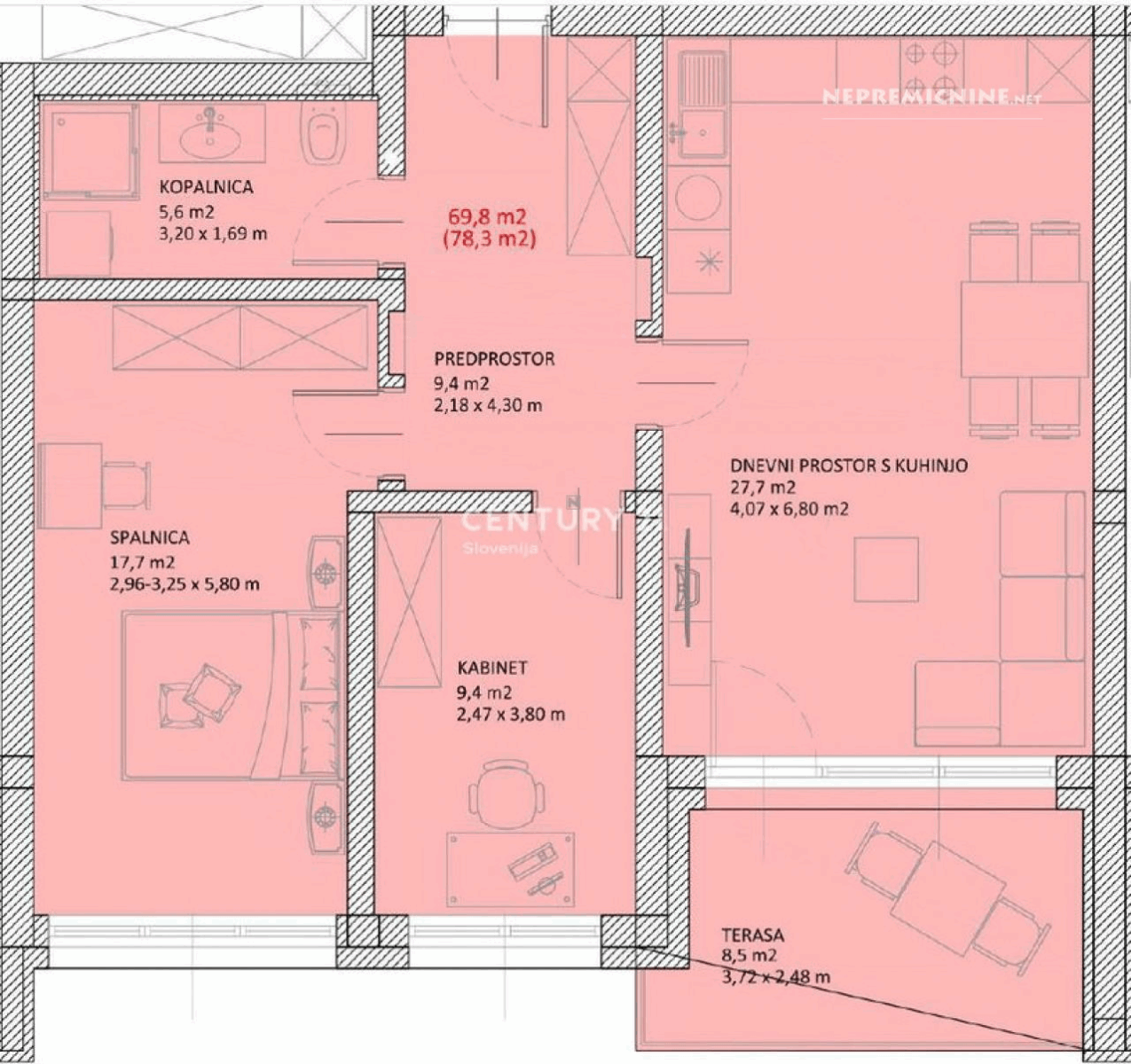 Ontdek deze prachtige nieuwbouw rijtjeshuis in Škofljica, gelegen in de regio Ljubljana-okolica. Met een royale woonoppervlakte van 174,6 m² en een perceel van 345 m² biedt deze woning een perfecte balans tussen modern comfort en natuurlijke omgeving. De woning is ontworpen met een functionele indeling en hoogwaardige materialen, wat zorgt voor een eigentijdse levensstijl. Geniet van de ruime terras die de binnenruimte met de natuur verbindt, ideaal voor zomerse en lenteavonden. De woning beschikt over drie slaapkamers, twee badkamers en een extra toilet, evenals drie parkeerplaatsen. De ligging is uitstekend, met snelle toegang tot de snelweg, openbaar vervoer en het centrum van Ljubljana. In de directe omgeving vindt u scholen, winkels, restaurants en andere voorzieningen. Škofljica biedt een rustige en groene omgeving, perfect voor gezinnen en natuurliefhebbers. De woning wordt verkocht in de derde verlengde bouwfase, met de mogelijkheid tot afwerking ‘sleutelklaar’.