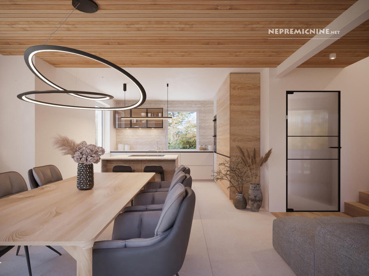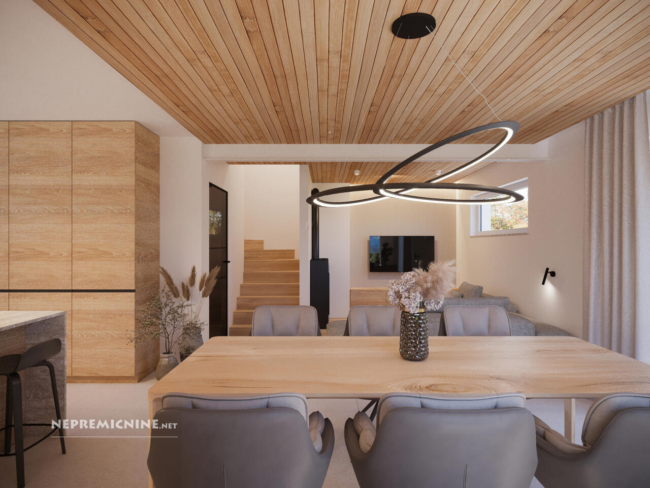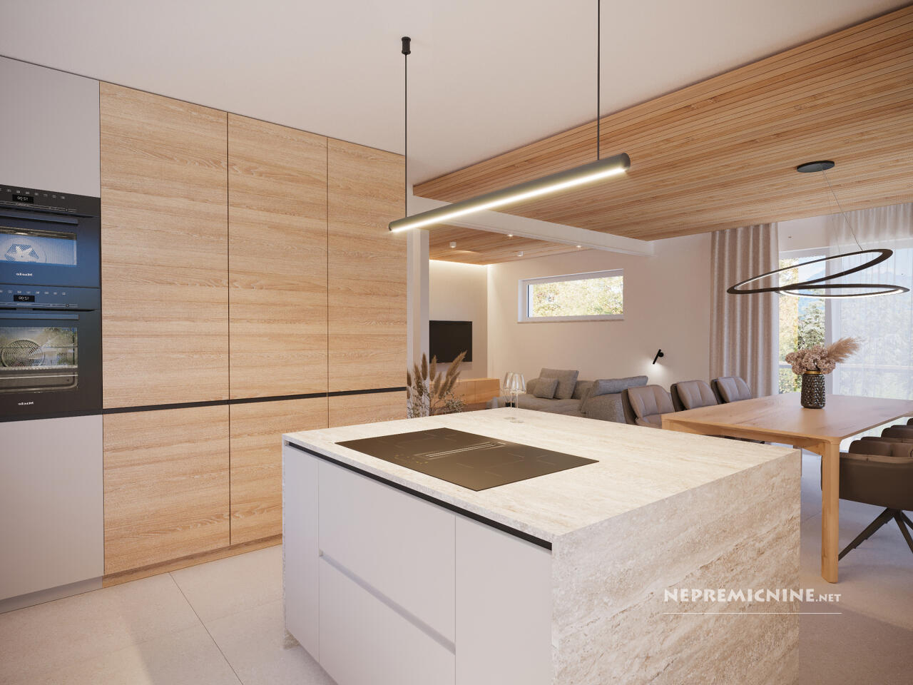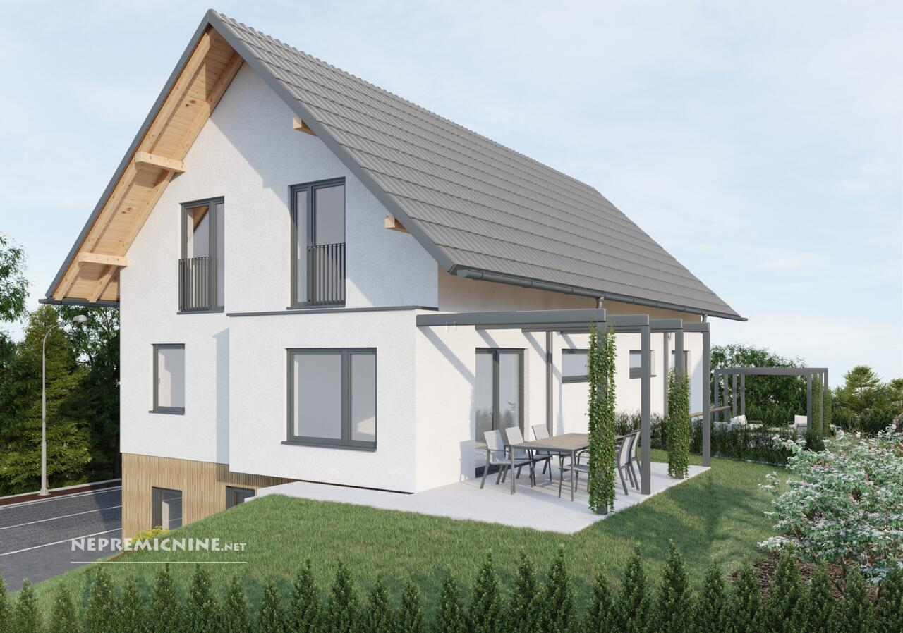 Ontdek deze moderne rijtjeshuis in Zgornja Bela, Preddvor, een nieuwbouwproject dat perfect is voor gezinnen of investeerders. Met een woonoppervlakte van 144,9 m² en een perceel van 256,08 m² biedt deze woning een prachtig uitzicht op de Storžič en de Kamniško-Savinjske Alpen. De woning is ontworpen met energie-efficiëntie in gedachten en heeft een energielabel A1, wat zorgt voor lage energiekosten en een milieuvriendelijke levensstijl. De open woonkamer baadt in natuurlijk licht en er is een grote terras voor ontspanning. De locatie biedt snelle toegang tot Kranj (12 minuten), de snelweg (15 minuten) en Ljubljana (30 minuten). In de buurt vindt u scholen, winkels en prachtige natuur. Dit is een unieke kans om te wonen in een rustige omgeving met alle voorzieningen binnen handbereik.