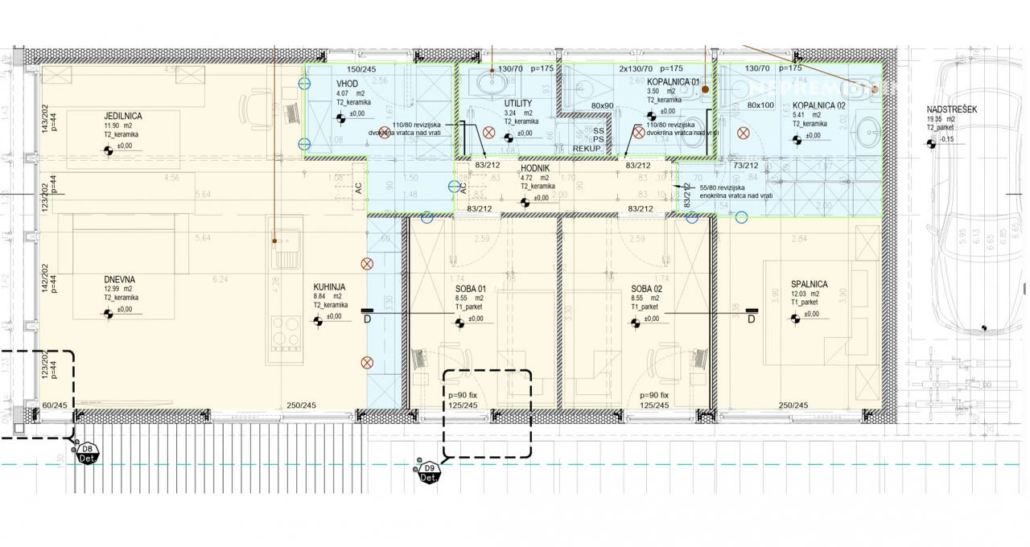 Ontdek deze unieke moderne stadswoning in Nova Gorica, ideaal voor comfortabel en gezond wonen. Deze gelijkvloerse woning combineert de warmte van natuurlijke materialen met moderne architectuur. De woning is ontworpen met functionaliteit, energie-efficiëntie en wooncomfort in gedachten. De woning biedt een uitstekende ruimtebenutting en is geschikt voor zowel koppels als gezinnen. De natuurlijke esthetiek, duurzaamheid, technologische verfijning en aardbevingsbestendigheid maken deze woning tot een oase in het hart van de stad. Het 4-kamer appartement in deze eengezinswoning omvat een woonkamer met keuken en eetkamer, twee kinderkamers, een slaapkamer, twee badkamers en een wasruimte. Buiten is er een carport en een houten terras. De woning is voorzien van vloerverwarming, airconditioning en een ventilatiesysteem met warmteterugwinning. De ligging in Nova Gorica biedt gemakkelijke toegang tot lokale voorzieningen, winkels en restaurants, evenals uitstekende vervoersmogelijkheden. De regio Severna Primorska staat bekend om zijn prachtige natuur en toeristische attracties.