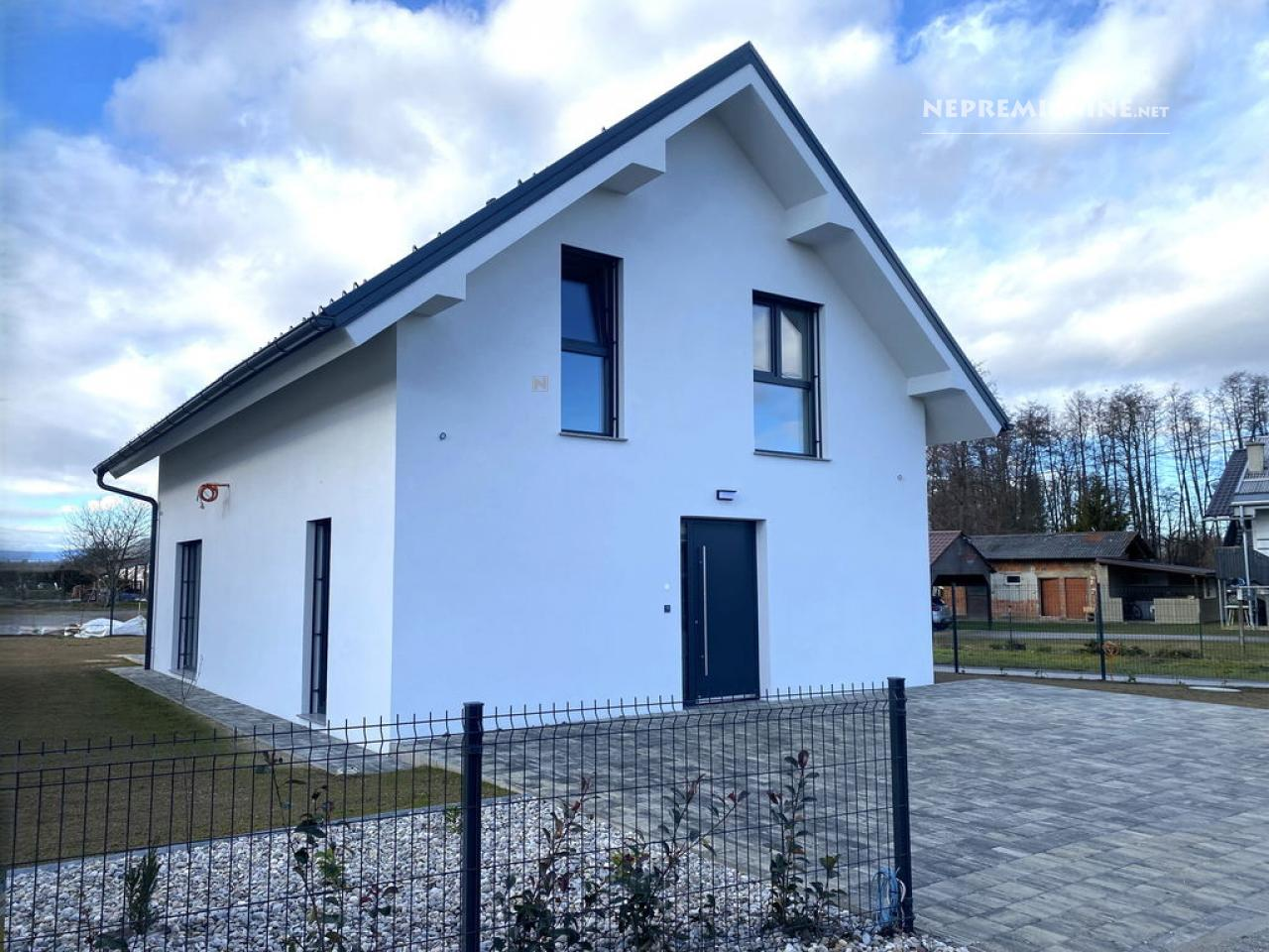 Deze moderne vrijstaande woning, gelegen in het pittoreske dorpje Zabovci nabij Ptuj, biedt een perfecte combinatie van rust en nabijheid tot stedelijke voorzieningen. Met een woonoppervlakte van 135,83 m² en een perceel van 500 m², is deze nieuwbouw uit 2024 ideaal voor gezinnen. De woning beschikt over drie slaapkamers, twee badkamers, een terras en een warmtepomp. De nabijheid van het Ptujsko meer biedt tal van recreatiemogelijkheden, terwijl de nabijheid van scholen, winkels en andere voorzieningen het dagelijks leven vergemakkelijkt. De regio Podravska staat bekend om zijn prachtige natuur en culturele bezienswaardigheden, zoals het historische stadje Ptuj. De woning is goed bereikbaar met het openbaar vervoer en ligt op slechts enkele kilometers van de snelweg.