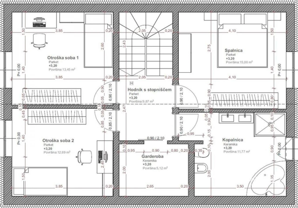 Deze moderne vrijstaande woning is gelegen in het pittoreske dorpje Zabovci, slechts enkele minuten rijden van de stad Ptuj. De nabijheid van het Ptuj-meer biedt tal van ontspanningsmogelijkheden op wandelpaden en een ontsnapping aan het drukke stadsleven. Ondanks de idyllische ligging in een natuurlijke omgeving, biedt de locatie snelle toegang tot alle belangrijke infrastructuur. In de directe omgeving vindt u een school, kleuterschool, winkel, postkantoor, bibliotheek en andere voorzieningen. De woning is slechts 2 km verwijderd van de gemeente Markovci en 3 km van de stad Ptuj en de snelweg. De begane grond van het huis omvat een hal, technische ruimte, badkamer, benutbare ruimte onder de trap; een open woonkamer, eetkamer en keuken met toegang tot het terras en de tuin. Verder is er een ruime studeerkamer. De trap leidt naar de zolder, waar drie slaapkamers, een kleedkamer en een ruime badkamer zijn ingericht. Het huis is gebouwd met traditionele baksteen, met een gewapend betonnen plaat van 25 cm dikte, en heeft hoogwaardige PVC-ramen met driedubbele beglazing. De gevel is geïsoleerd met 16 cm EPS en de woning is voorzien van een warmtepomp. Het perceel van 500 m² is volledig vlak, omheind en aangelegd met gras en bestrating rondom het huis. Dit is een uitstekende kans voor iedereen die op zoek is naar een kwalitatieve woonomgeving met een functioneel ontwerp en lage operationele kosten. De woning is klaar voor afwerking, waarbij u de materialen voor de afwerking kunt kiezen binnen een vooraf afgesproken prijsklasse.