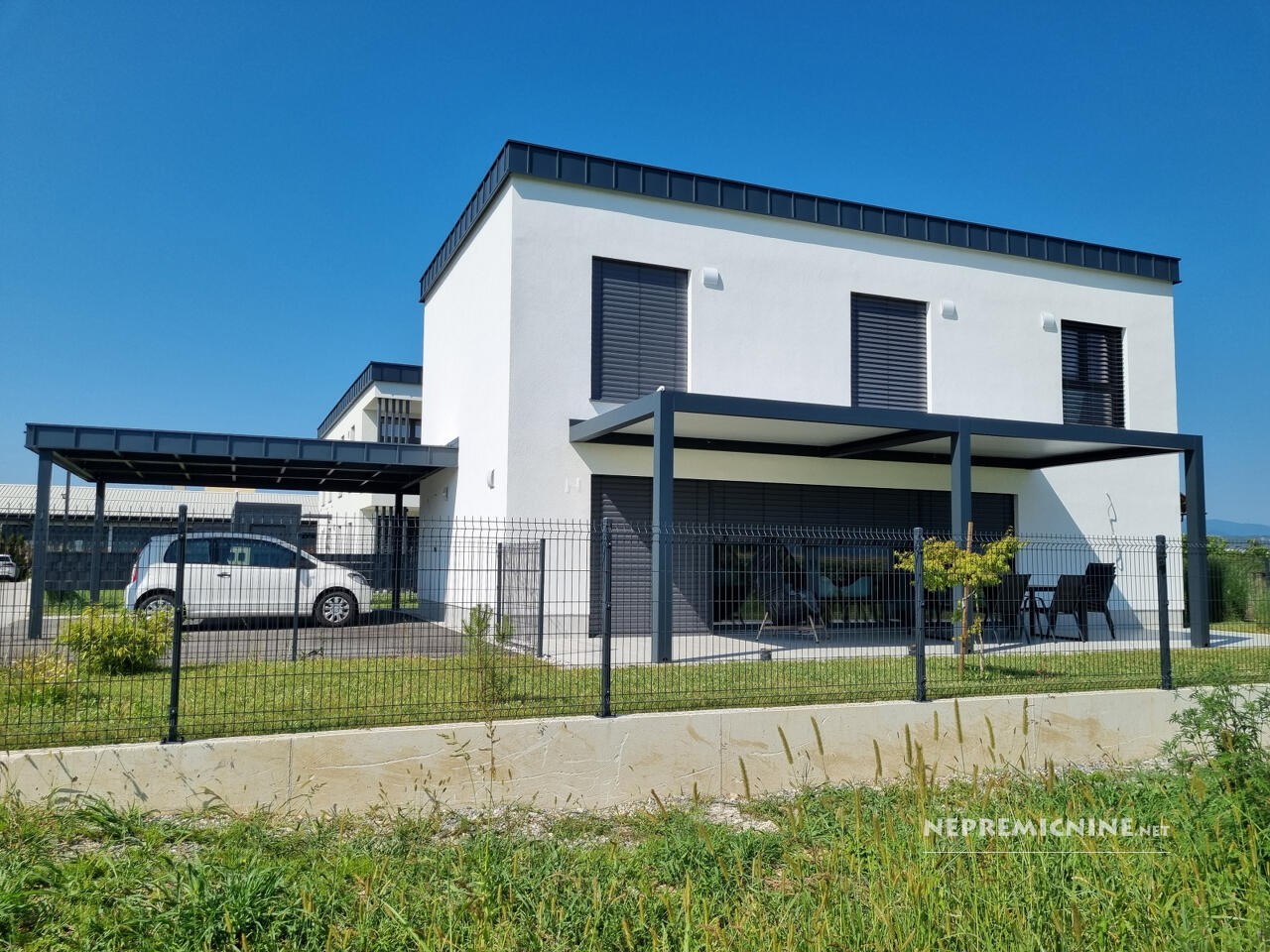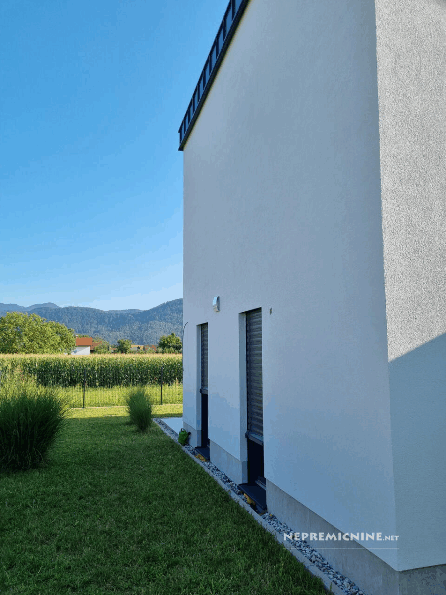 Ontdek deze prachtige, moderne vrijstaande woning in Šentrupert, gelegen in de schilderachtige regio Savinjska. Deze nieuwbouw, klaar voor bewoning in 2025, biedt een royale woonoppervlakte van 210,55 m² en een perceel van 413 m². De woning is ontworpen met grote glazen oppervlakken die een adembenemend panoramisch uitzicht bieden op de omliggende natuur, waaronder korenvelden en verre heuvels. Geniet van de rust en stilte van het platteland, terwijl u toch dicht bij belangrijke steden zoals Ljubljana en Celje bent.