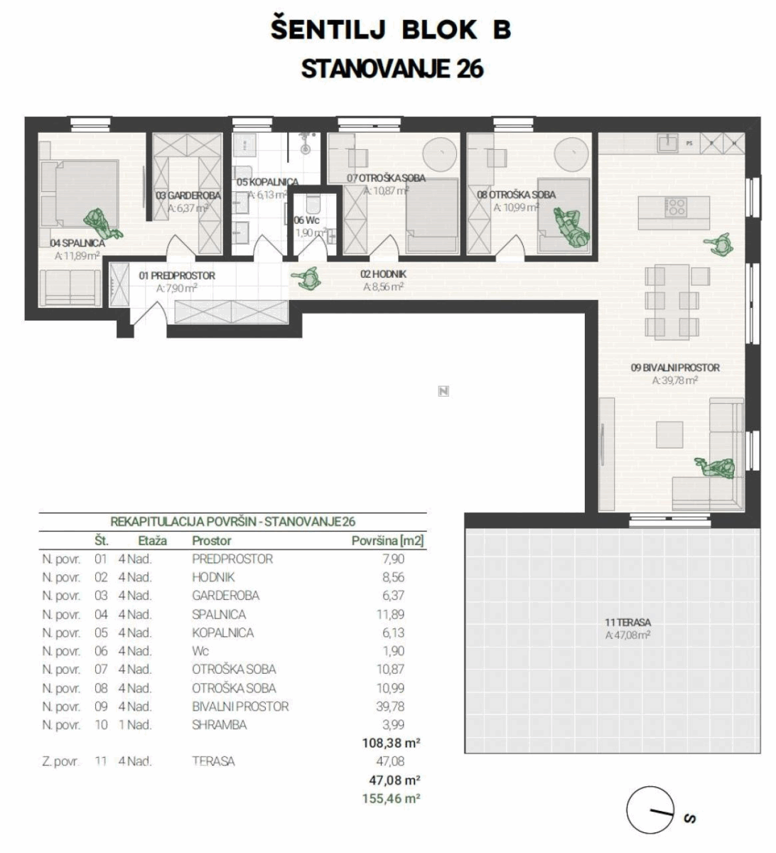 Dit prachtige 4-kamer appartement in Šentilj biedt een unieke kans voor kopers die op zoek zijn naar comfort en moderne voorzieningen. Gelegen op slechts 15 km van Maribor en dicht bij de grens met Oostenrijk, biedt deze woning een uitstekende locatie voor zowel woon- als investeringsdoeleinden. Het appartement van 153,64 m² is ontworpen met energie-efficiëntie in gedachten en beschikt over een groot terras met een prachtig uitzicht. De nabijheid van scholen, winkels, en medische voorzieningen binnen 400 meter maakt het een ideale keuze voor gezinnen. Het gebouw is voorzien van een lift en biedt een ondergrondse parkeergarage. De moderne architectuur en hoogwaardige bouwmaterialen, zoals houten ramen met driedubbele beglazing en vloerverwarming via een zonne-energiecentrale, dragen bij aan het comfort en de duurzaamheid van de woning. De regio Podravska staat bekend om zijn prachtige natuur en biedt tal van recreatiemogelijkheden, terwijl de nabijheid van Maribor zorgt voor gemakkelijke toegang tot stedelijke voorzieningen en culturele attracties.