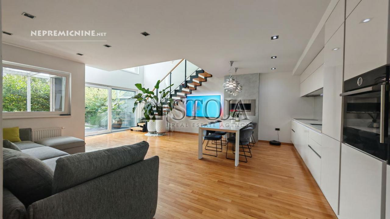 Dit prestigieuze en ruime 4,5-kamer appartement in Zelena Jama biedt een ongeëvenaard wooncomfort en elegantie. Gelegen op een uitstekende locatie, is het appartement uitgerust met modern meubilair van hoge kwaliteit. Het appartement is verdeeld over twee verdiepingen en beschikt over een totale woonoppervlakte van 138 m², een goed onderhouden en omheind atrium van 70 m², en een handige berging van 5,5 m². De bovenverdieping omvat twee slaapkamers verbonden door een groot balkon, een ruime badkamer, een inloopkast en een hal. De begane grond biedt een elegante entree met een glazen balustrade, een grote, lichte woonkamer, een keuken met eetkamer, een kantoor (mogelijkheid voor een extra kamer), een badkamer en een goed onderhouden atrium dat privacy en ontspanning biedt. Het appartement is uitzonderlijk licht en ruim, met een functionele en doordachte indeling. Het atrium combineert het comfort van een huis met de voordelen van een appartement. De regio Ljubljana biedt tal van toeristische hoogtepunten, zoals het kasteel van Ljubljana en het Tivoli Park. In de buurt zijn er diverse winkels, restaurants en uitstekende vervoersmogelijkheden. Mis deze kans niet om een appartement te bezitten dat prestige, elegantie en ultiem wooncomfort combineert.