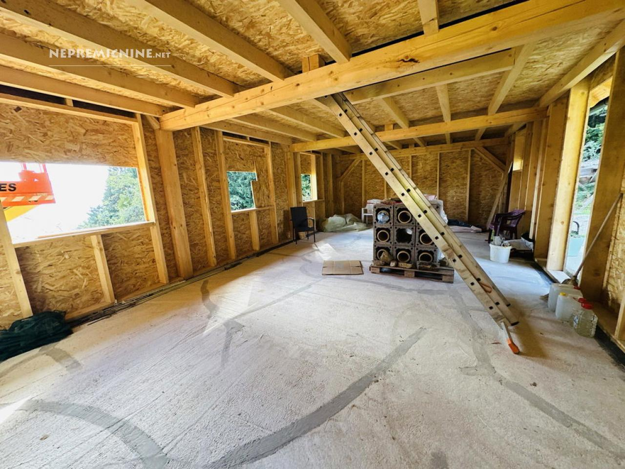 Ontdek dit prachtige landgoed met een vrijstaand huis in het schilderachtige Modrič, gelegen in de regio Podravska. Dit huis, gebouwd in 2025, biedt een unieke kans om te wonen in een serene natuurlijke omgeving op de hellingen van Pohorje. Het huis heeft een kelder, begane grond en zolder, met een totale woonoppervlakte van 120 m². De kelder van 65 m² biedt ruimte voor gereedschap en een multifunctionele kamer. De begane grond is nog af te werken naar eigen wens, terwijl de zolder ruimte biedt voor slaapkamers. Het landgoed beslaat een indrukwekkende 9.232 m², inclusief een weide en een deel bos, en ligt op een hoogte van 669 meter. De woning beschikt over een bouw- en gebruiksvergunning en is aangesloten op het openbare water- en elektriciteitsnet. Verwarming is voorzien via een open haard en vloerverwarming met een warmtepomp. Geniet van de nabijheid van de prachtige natuur van Pohorje, met tal van wandel- en fietspaden. Slovenska Bistrica biedt alle nodige voorzieningen, zoals winkels en restaurants, en is goed bereikbaar via het openbaar vervoer.