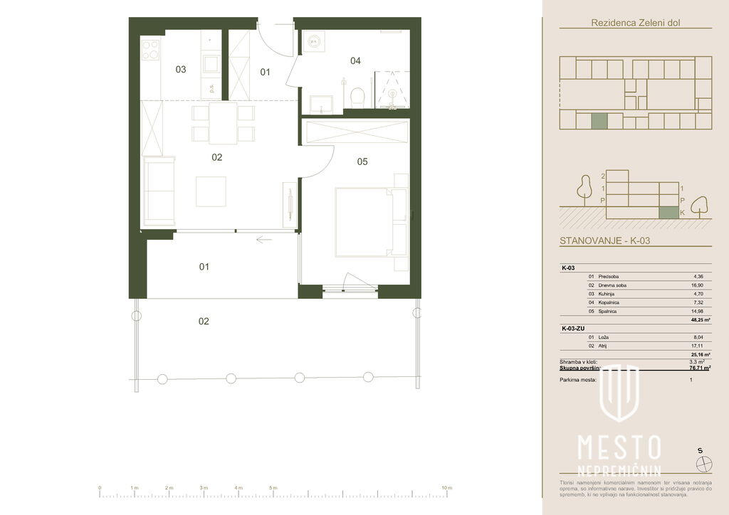 Ontdek dit prachtige 2-kamer appartement in de nieuwbouw ‘Rezidenca Zeleni dol’ in Dolsko, Dol pri Ljubljani. Dit moderne appartement biedt een ruime en lichte leefruimte, ideaal voor wie op zoek is naar een rustige maar goed bereikbare omgeving. Het complex beschikt over een verzorgde tuin met struiken, bomen, bankjes en wandelpaden, perfect om te ontspannen in de natuur. Het appartement is ontworpen met hoge standaarden voor maximaal comfort en functionaliteit. Geniet van de ruime loggia en het atrium, ideaal voor ontspanning in de buitenlucht. Een parkeerplaats in de overdekte garage en een berging zijn beschikbaar tegen een meerprijs. Meer dan de helft van de appartementen is al verkocht! De regio biedt uitstekende verbindingen met het stadscentrum en alle benodigde infrastructuur voor comfortabel wonen. Dolsko is een rustige en groene omgeving, maar biedt toch alle voordelen van stedelijke voorzieningen.