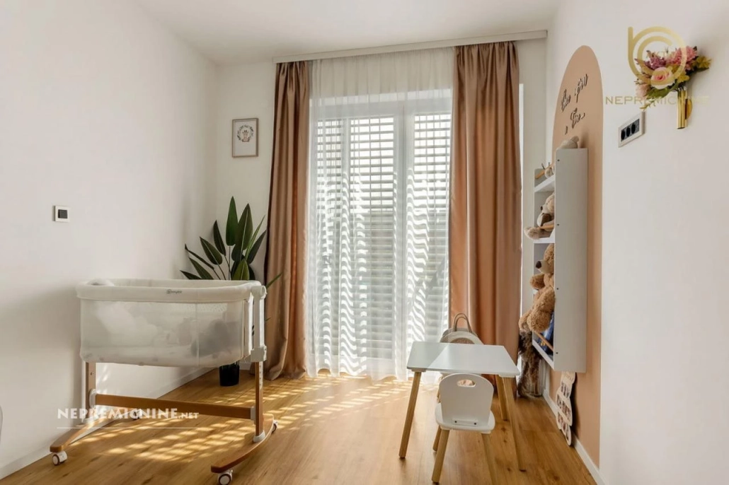 Deze prachtige moderne rijtjeshuis in Domžale biedt een unieke kans voor gezinnen die op zoek zijn naar comfort en privacy. Gelegen op een gewilde locatie nabij het centrum van Domžale, biedt deze woning een perfecte mix van stedelijk gemak en natuurlijke schoonheid. De woning is gebouwd in 2022 en beschikt over een ruime woonoppervlakte van 143,9 m², verdeeld over twee verdiepingen. Het perceel van 268 m² omvat een prachtig aangelegde en omheinde tuin met een automatische bewaterings- en maaisysteem, evenals een overdekt terras voor ontspanning. De woning is uitgerust met hoogwaardige voorzieningen, waaronder een warmtepomp, airconditioning, en een geavanceerd beveiligingssysteem met camera’s en alarmsensoren. De keuken is voorzien van moderne apparatuur en maatwerk meubels. De ligging biedt gemakkelijke toegang tot de snelweg en nabijgelegen recreatiegebieden zoals het bos Šumberk, ideaal voor wandelingen en mountainbiken. Domžale biedt een scala aan voorzieningen, waaronder winkels, restaurants en scholen, allemaal binnen handbereik. Deze woning is perfect voor gezinnen die op zoek zijn naar een hoogwaardige levensstijl in een rustige en goed onderhouden buurt.