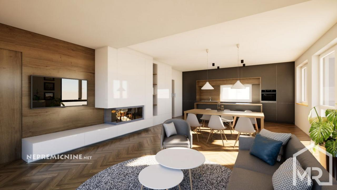 Ontdek dit prachtige nieuwbouw dubbel familiehuis in Stanežiče, Ljubljana, met een adembenemend uitzicht op de Šmarna Gora.