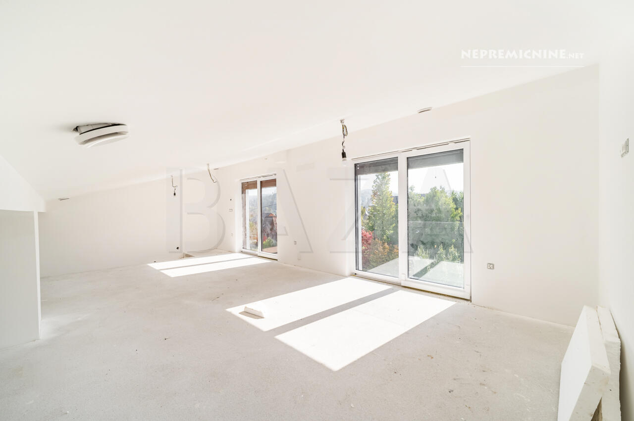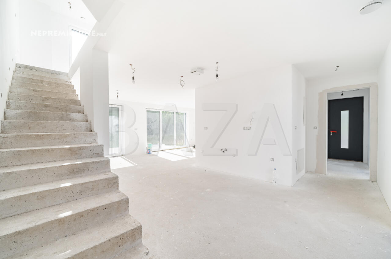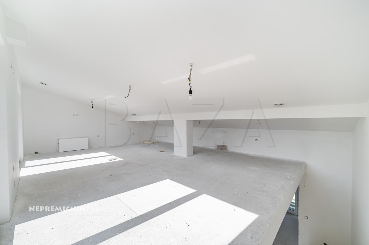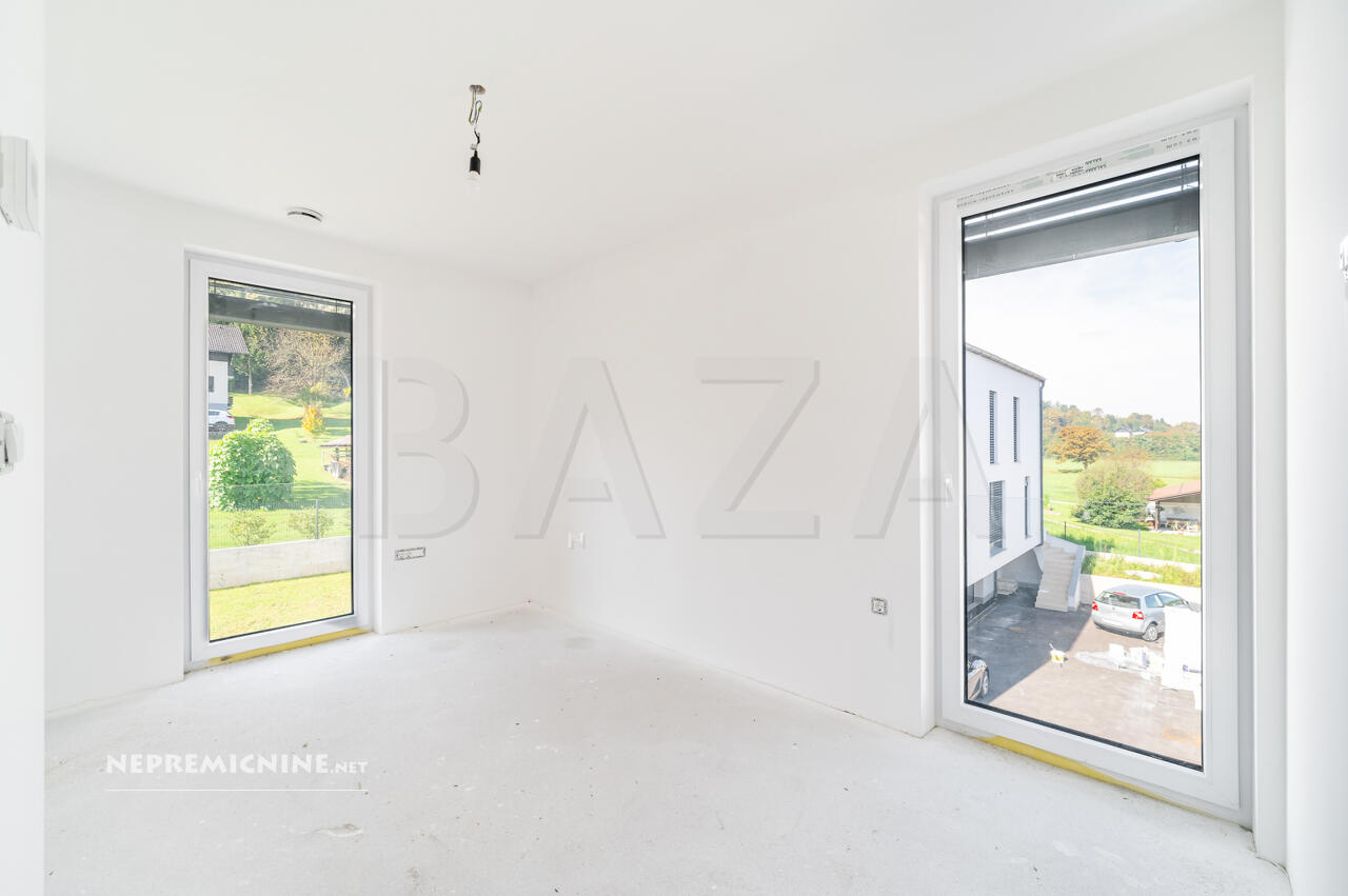 Deze prachtige nieuwbouw rijtjeshuis in Dobrunje biedt een unieke kans voor gezinnen die op zoek zijn naar comfort en functionaliteit. Gelegen in een rustige buurt van Ljubljana, biedt deze woning een moderne architectuur met een functionele indeling. De woning beschikt over vier slaapkamers, twee badkamers, een ruime woonkamer met keuken en eetkamer, en een zolder die kan worden gebruikt als ontspanningsruimte, kantoor of speelkamer. De woning is gebouwd met hoogwaardige materialen, waaronder een bakstenen constructie, betonnen vloeren en een houten dak met isolatie. De locatie is ideaal, met nabijgelegen recreatiegebieden, natuur en een bushalte. Dobrunje is een charmante wijk in Ljubljana, bekend om zijn groene omgeving en gemakkelijke toegang tot de stad. De regio Ljubljana biedt tal van toeristische attracties, zoals het kasteel van Ljubljana en de pittoreske oude binnenstad. Winkels, restaurants en andere voorzieningen zijn gemakkelijk bereikbaar, en er zijn uitstekende vervoersmogelijkheden naar het stadscentrum.