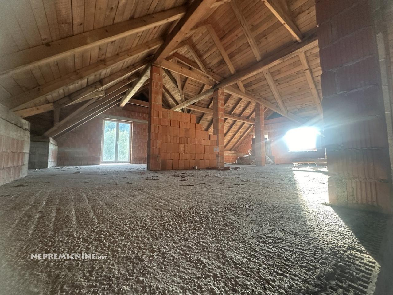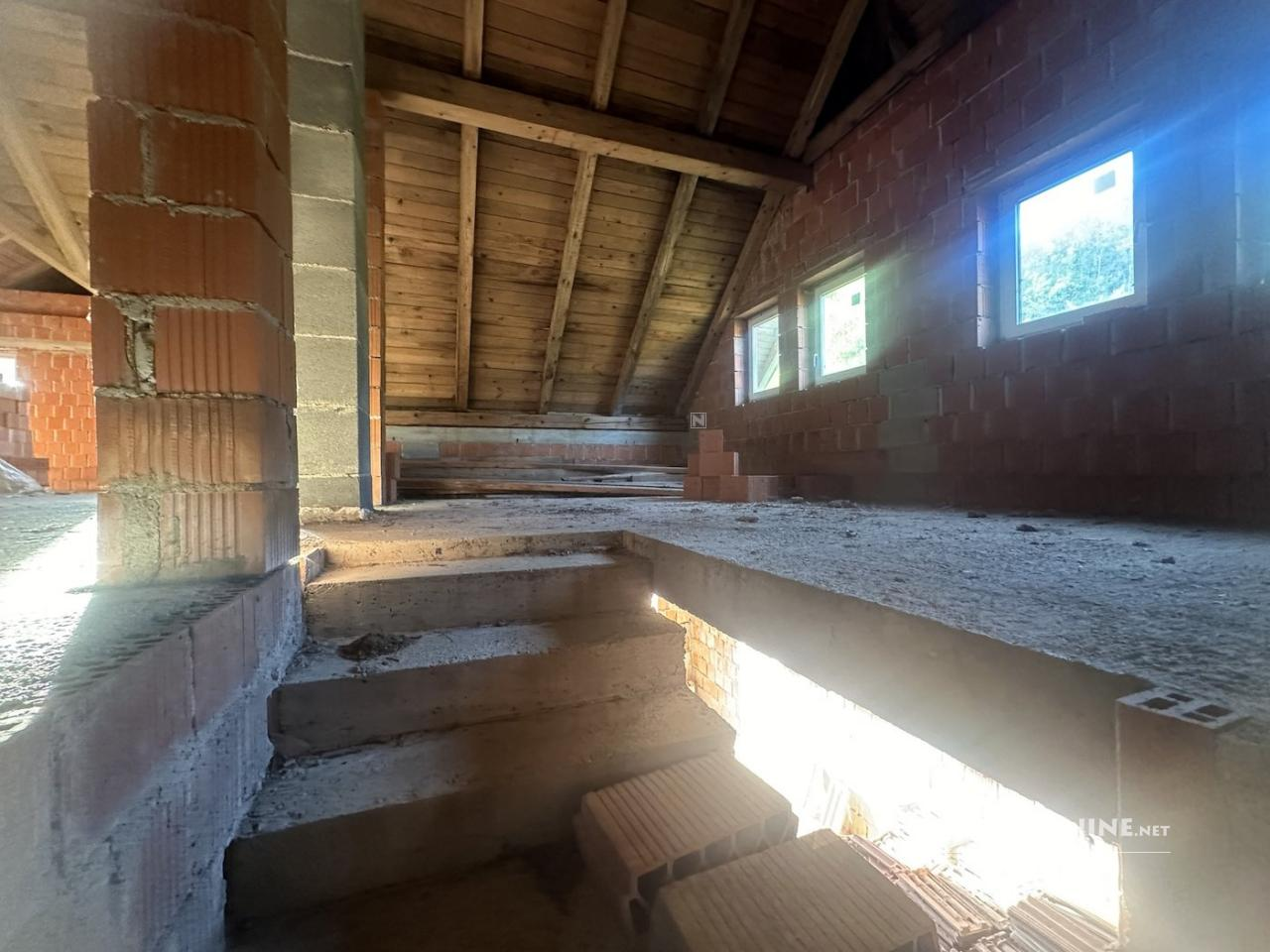Deze prachtige vrijstaande nieuwbouwwoning in Hrastovec biedt een unieke kans voor wie op zoek is naar een rustige en groene omgeving. Gelegen op een licht verhoogde locatie, biedt de woning een adembenemend uitzicht op de omliggende natuur. Met een totale oppervlakte van 242,9 m² biedt deze woning ruime en comfortabele leefruimtes, ideaal voor een gezinswoning of als investeringsmogelijkheid voor een vakantiehuis. De woning is in de derde bouwfase en beschikt over een bouwvergunning en projectdocumentatie, wat betekent dat alle belangrijke stappen voor verdere bouw en interieurafwerking al zijn voorbereid. De woning is voorzien van witte PVC-ramen en een witte voordeur. De afvoeren zijn al geïnstalleerd, maar de goten moeten nog worden geplaatst. De toegang tot de woning is geregeld via een erfdienstbaarheidspad, wat zorgt voor een gemakkelijke toegang tot het perceel. Het perceel van 1.037 m² biedt mogelijkheden voor een tuin of boomgaard. De locatie biedt veel privacy en rust, terwijl het toch praktisch bereikbaar is, met alle belangrijke voorzieningen zoals winkels, een gezondheidscentrum en de gemeente op slechts 2 kilometer afstand. Hoewel de woning nog niet is aangesloten op het elektriciteits- en waternetwerk, bevinden beide aansluitingen zich op slechts 60 meter afstand, wat een relatief eenvoudige aansluiting mogelijk maakt. Deze woning biedt een uitstekende kans voor iedereen die op zoek is naar een huis of vakantiehuis op een rustige locatie met een verbinding met de natuur, terwijl het toch niet te ver van de basisinfrastructuur ligt.